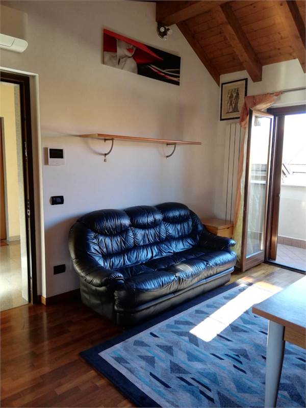 Cesano Maderno in pieno centro comodo con tutti i servizi di primaria necessità e non solo, tra cui Uffici pubblici, Comune, scuole, farmacie, banche, parco Borromeo, ufficio postale ed ogni genere di negozio alimentare, abbigliamento, edicola, ferramenta oltre che ai numerosi ristoranti e locali che rendono il centro del paese moderno e dinamico oltre che a breve distanza dalle principali arterie stradali e dalla Ferrovia Nord Milano proponiamo in affitto appartamento mansardato con travi a vista di due locali oltre i servizi con annesso box singolo. L'immobile è inserito al secondo ed ultimo piano di un contesto di piccola corte ed al suo interno è distribuito nel seguente modo: ingresso direttamente sulla zona giorno caratterizzata dal soggiorno con cucina a vista, dal quale si accede al terrazzino, antibagno che conduce al bagno con doccia e camera matrimoniale. L'unità immobiliare si presenta in buono stato manutentivo : gli infissi sono in legno già dotati di doppio vetro, tutta la pavimentazione è in parquet ad esclusione del bagno dove è presente il gres porcellanato ed il riscaldamento è autonomo mediante caldaia indipendente. L'appartamento è completamente arredato di cucina comprensiva di elettrodomestici ad esclusione della lavastoviglie con tavolo e sedie, mobili zona living, divano e camera matrimoniale comprensiva di letto, armadio e comodini.