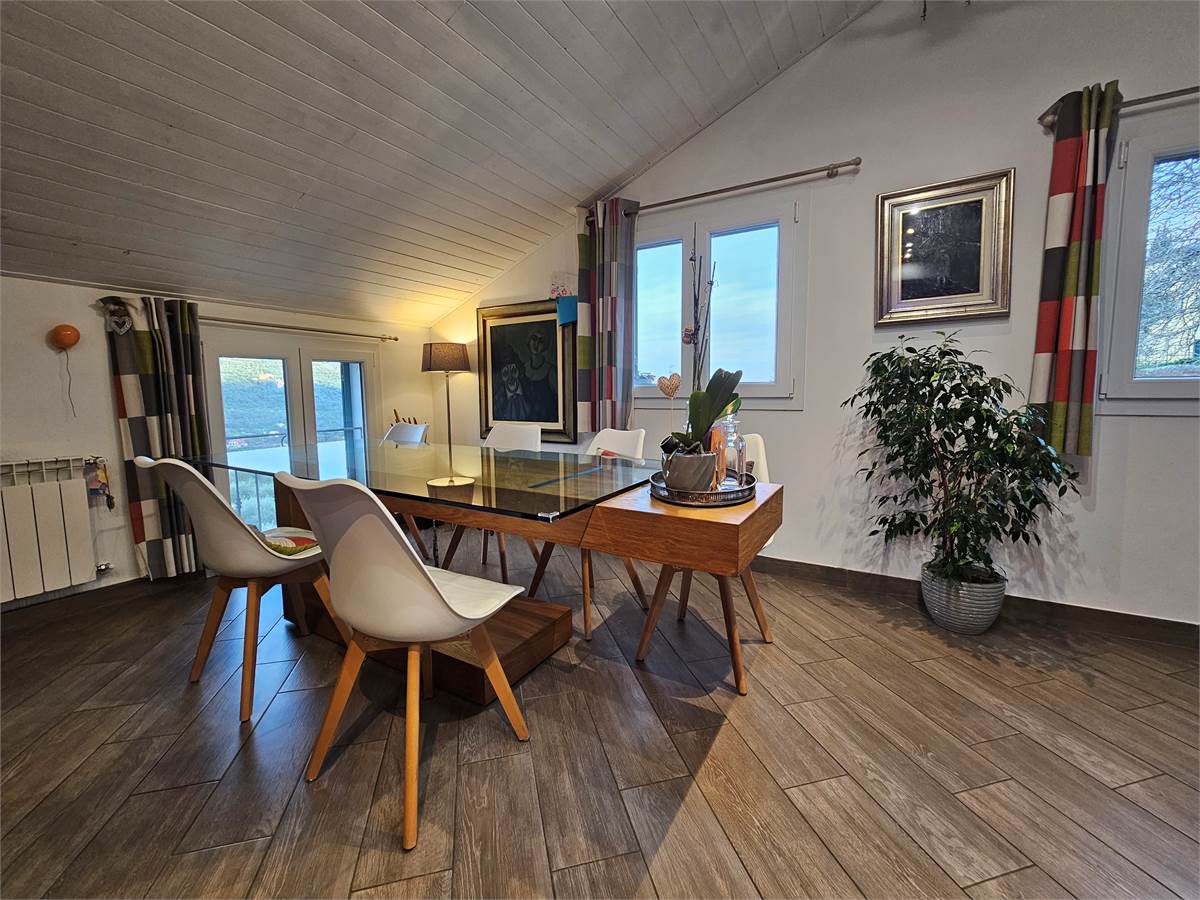 L'immobile è sito al piano primo, libero su tutti e quattro i lati, e la disposizione interna è la seguente: ingresso indipendente, soggiorno doppio con cucina a vista, disimpegno, camera matrimoniale con servizio en suite e cabina armadi, cameretta ed ulteriore bagno finestrato.