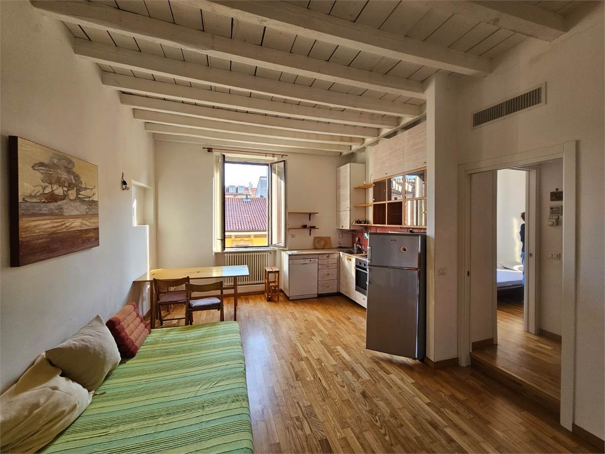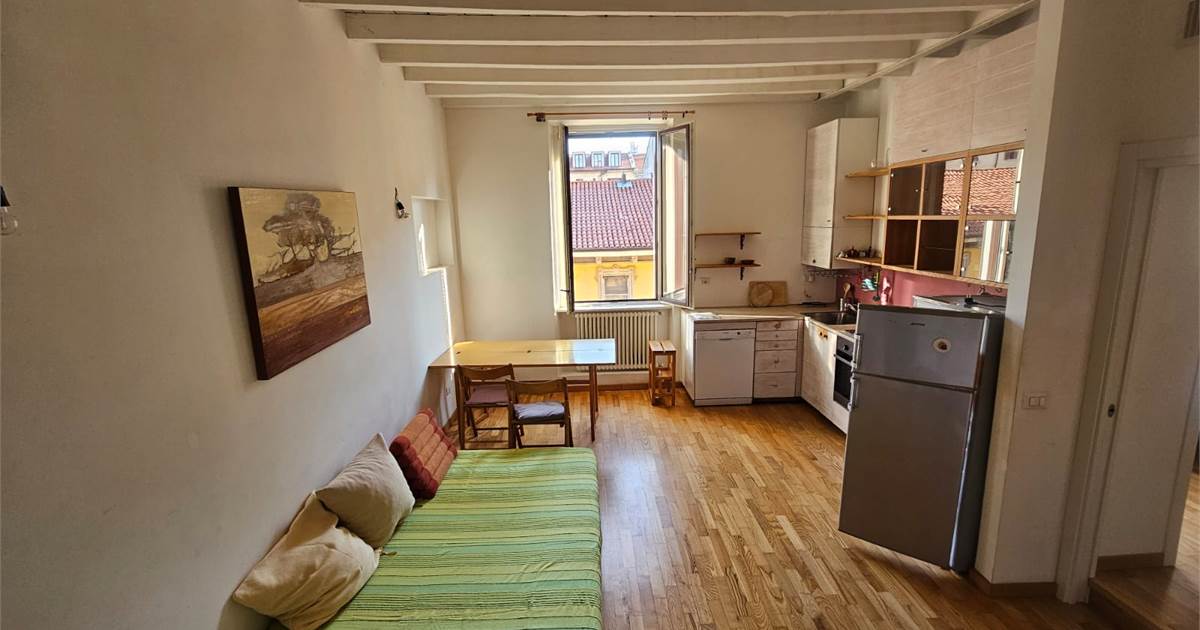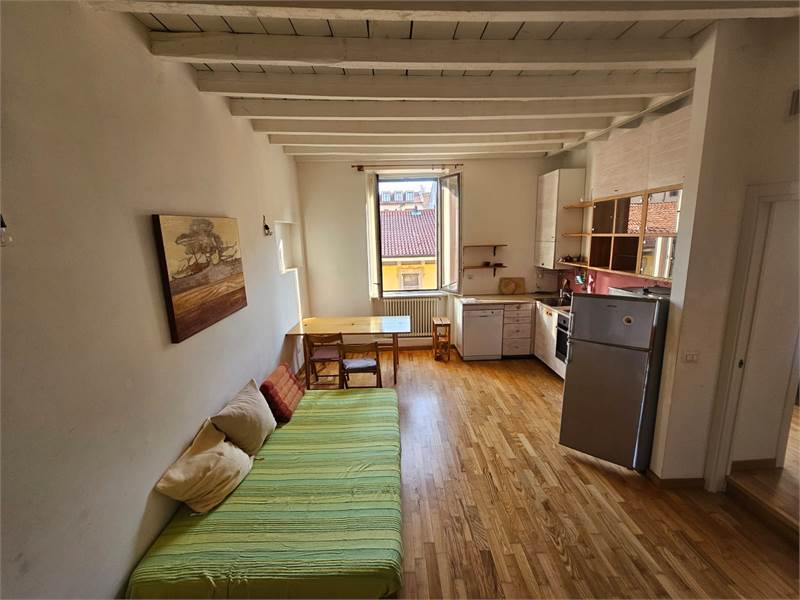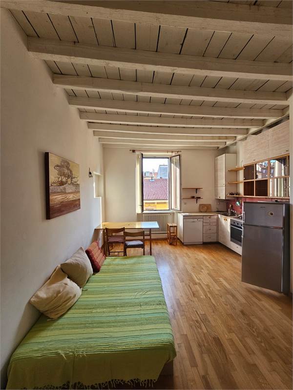 L'appartamento è posto al terzo piano di un condominio senza ascensore ed è composto da: ingresso, soggiorno con cucina a vista, camera matrimoniale e infine bagno cieco, completamente arredata.