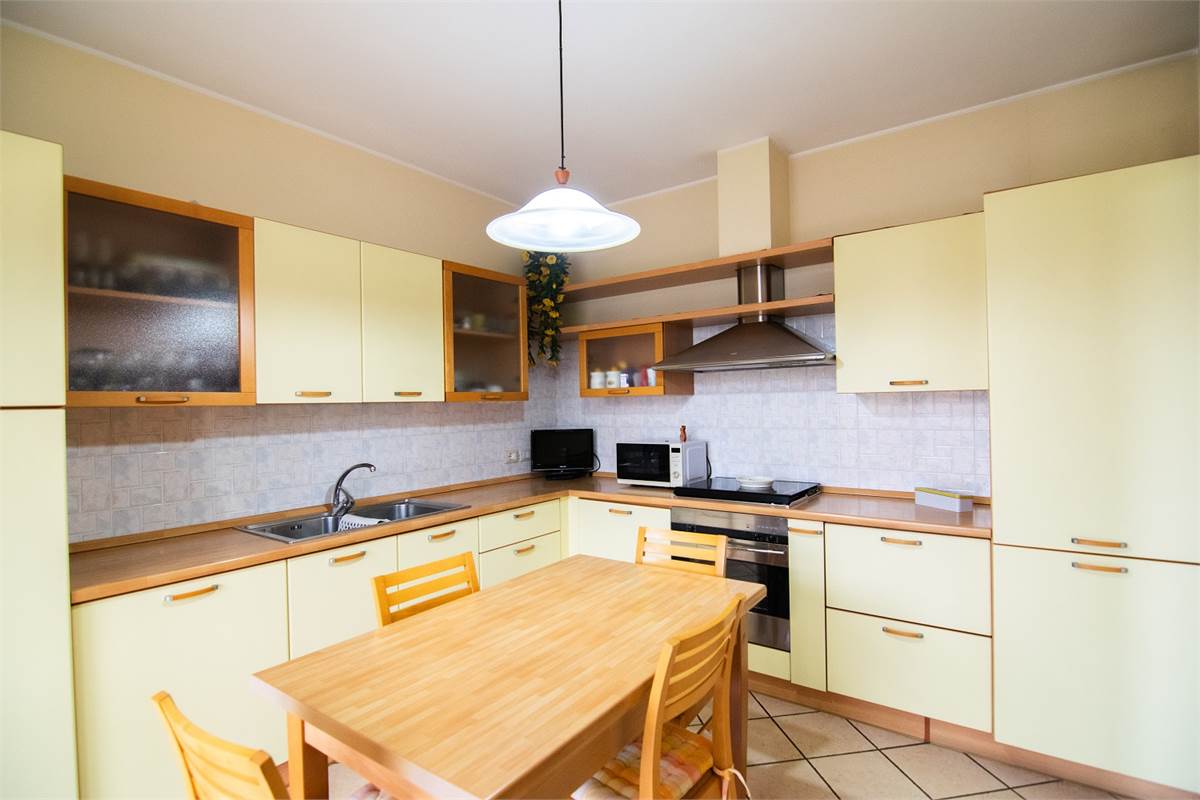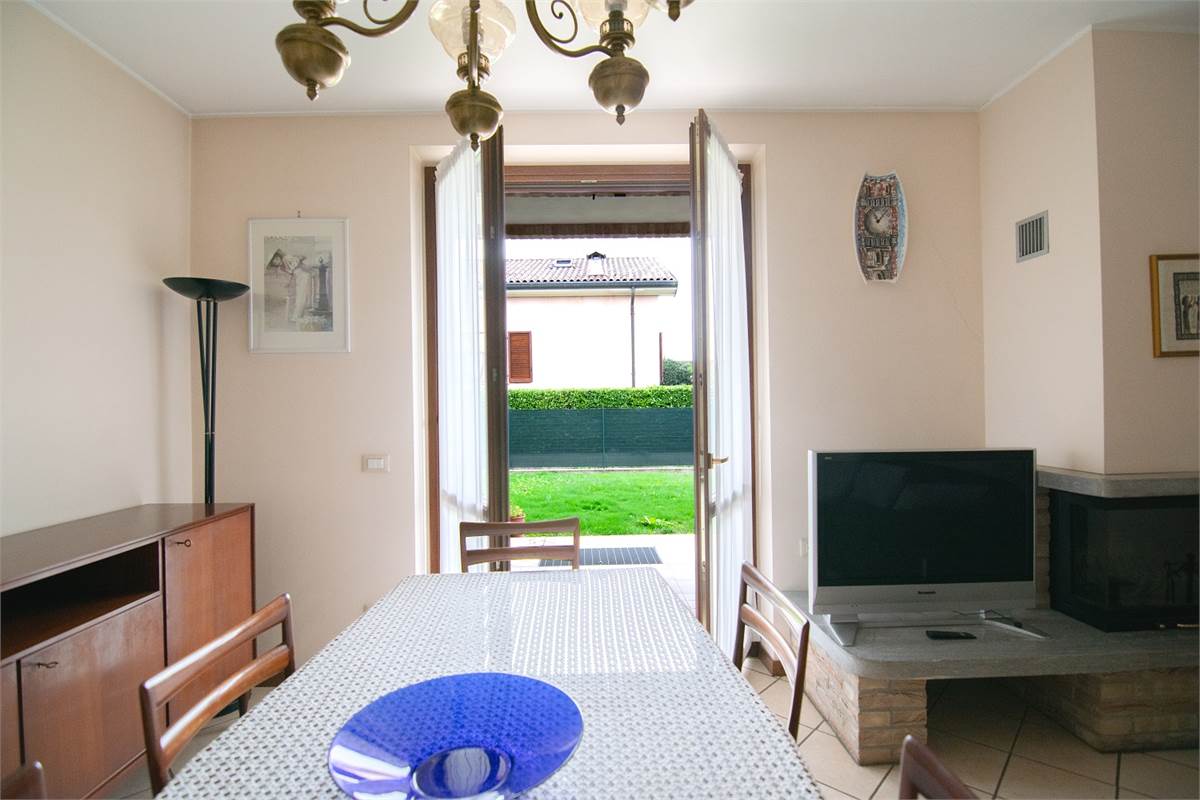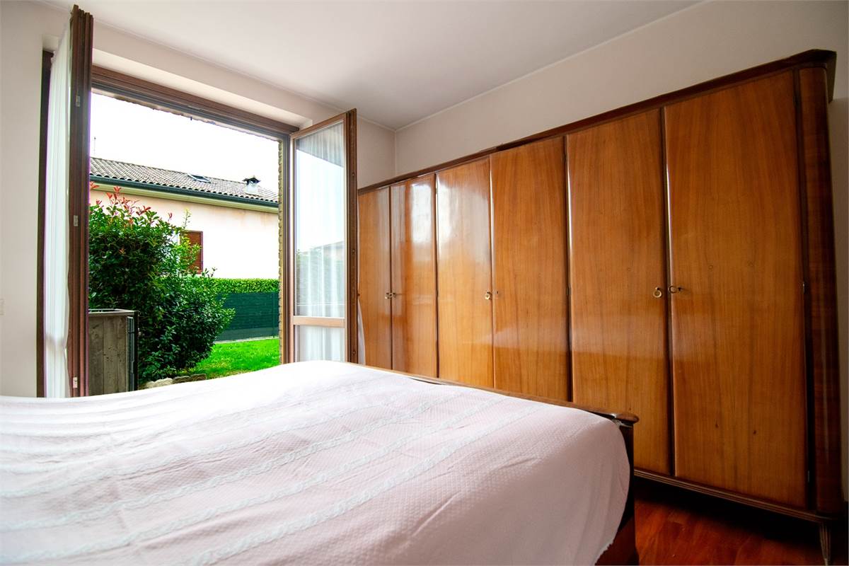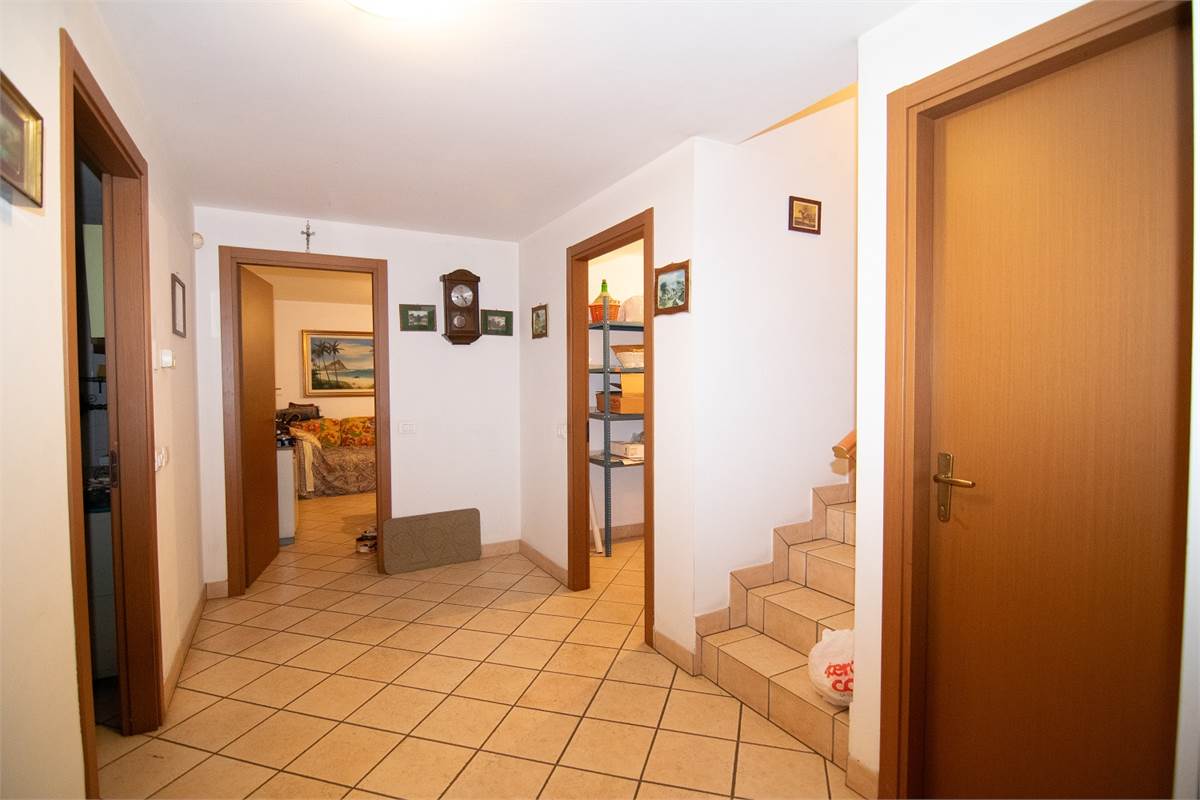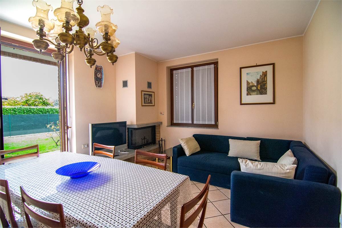 Al piano terra, circondato dal giardino in comune con la proprietà, troviamo un soggiorno, una cucina abitabile, due camere e un bagno;
