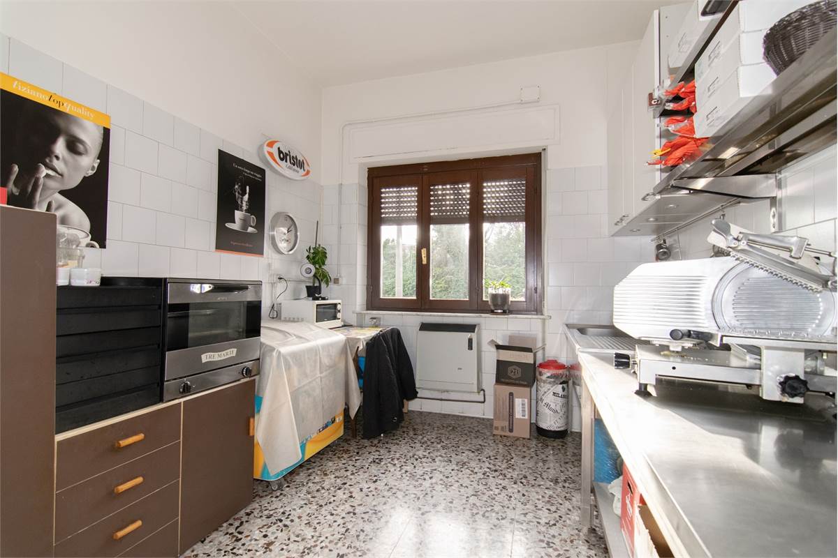 Il locale si sviluppa in modo funzionale ed accogliente, con due ampie sale interne, una cucina completamente attrezzata, un locale privato ad uso ufficio, due bagni (di cui uno esterno) ed un ripostiglio.