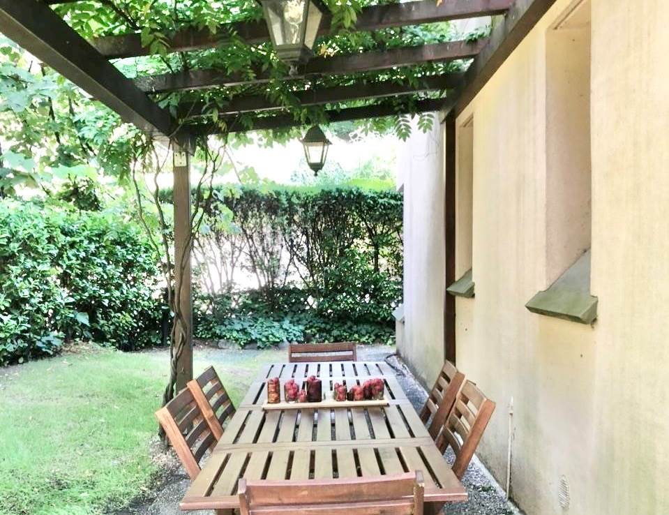 All'interno dello splendido residence " I Ronchi ", contesto signorile e riservato, dotato di servizio portineria, piscina, campo da tennis, campo da calcetto, campo da bocce, palestra, lavanderia e area solarium, proponiamo in vendita TRILOCALE ARREDATO con GIARDINO PRIVATO, posto al piano terra e con accessi indipendenti.