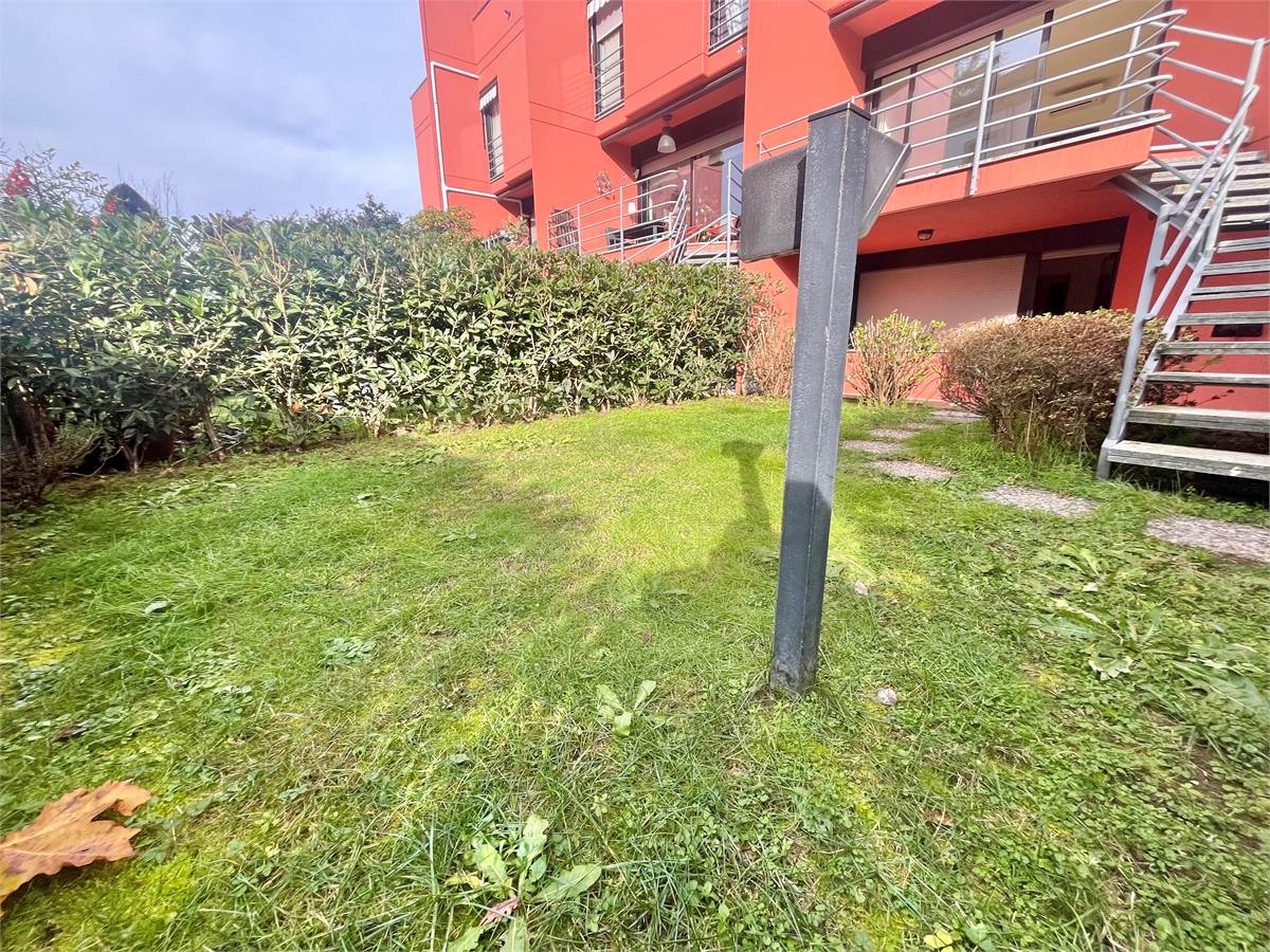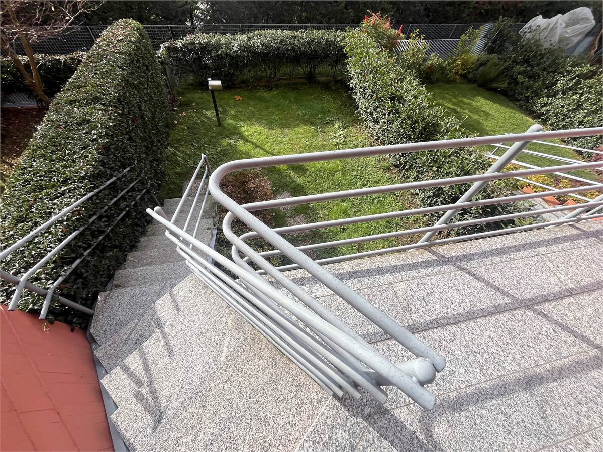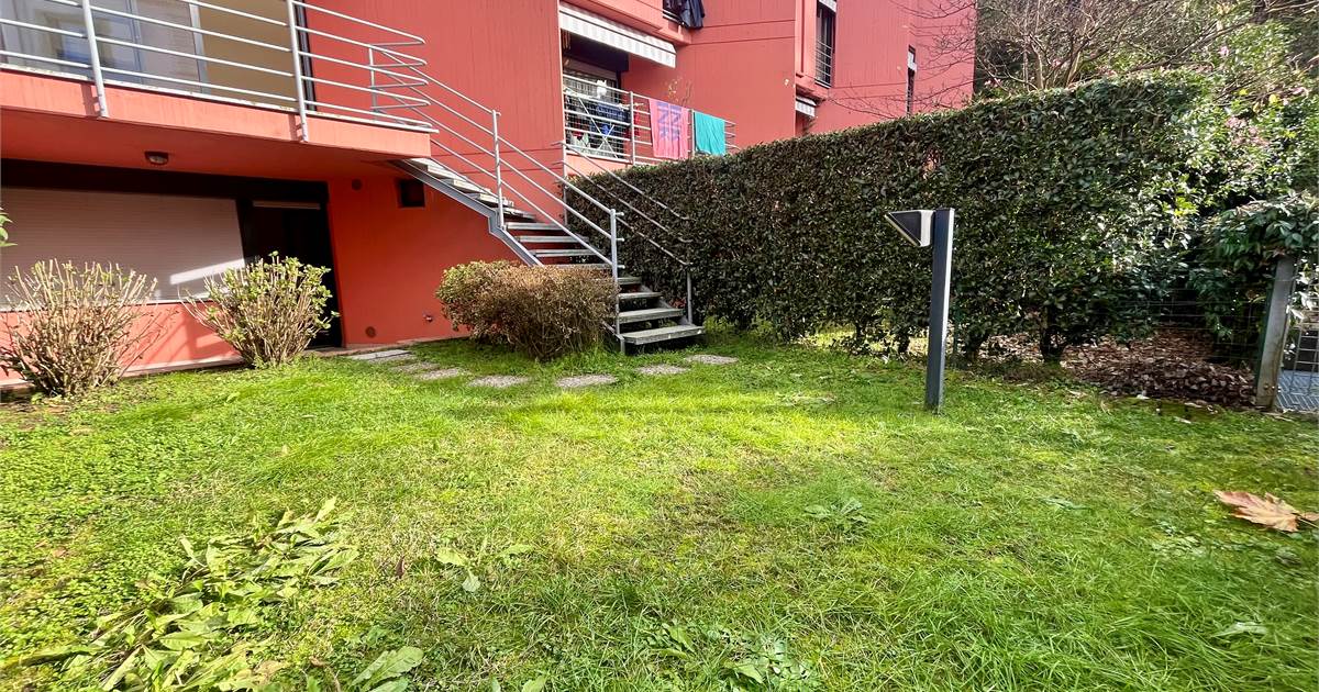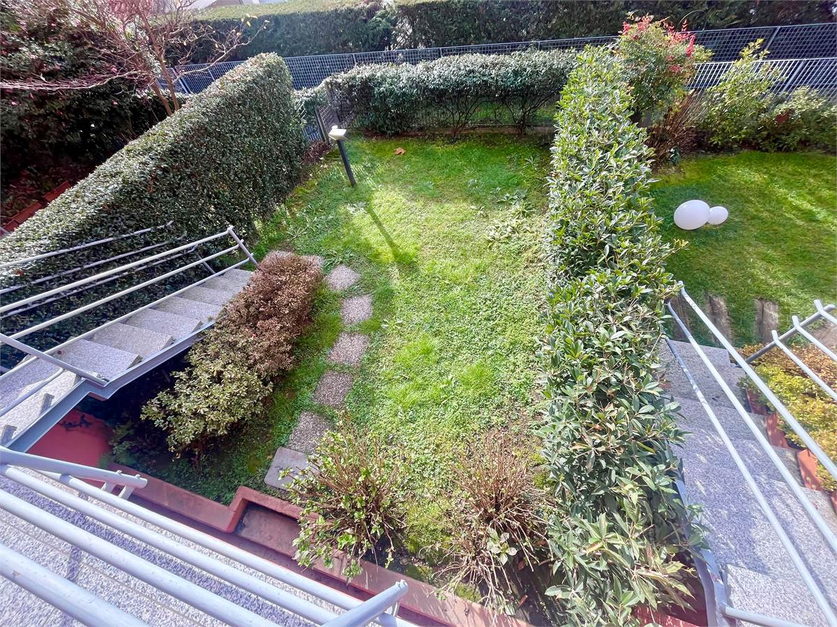 al piano primo luminoso soggiorno con camino, con accesso al secondo terrazzino coperto e al giardino di proprietà tramite una scala esterna, ampia cucina abitabile con balcone e ripostiglio;