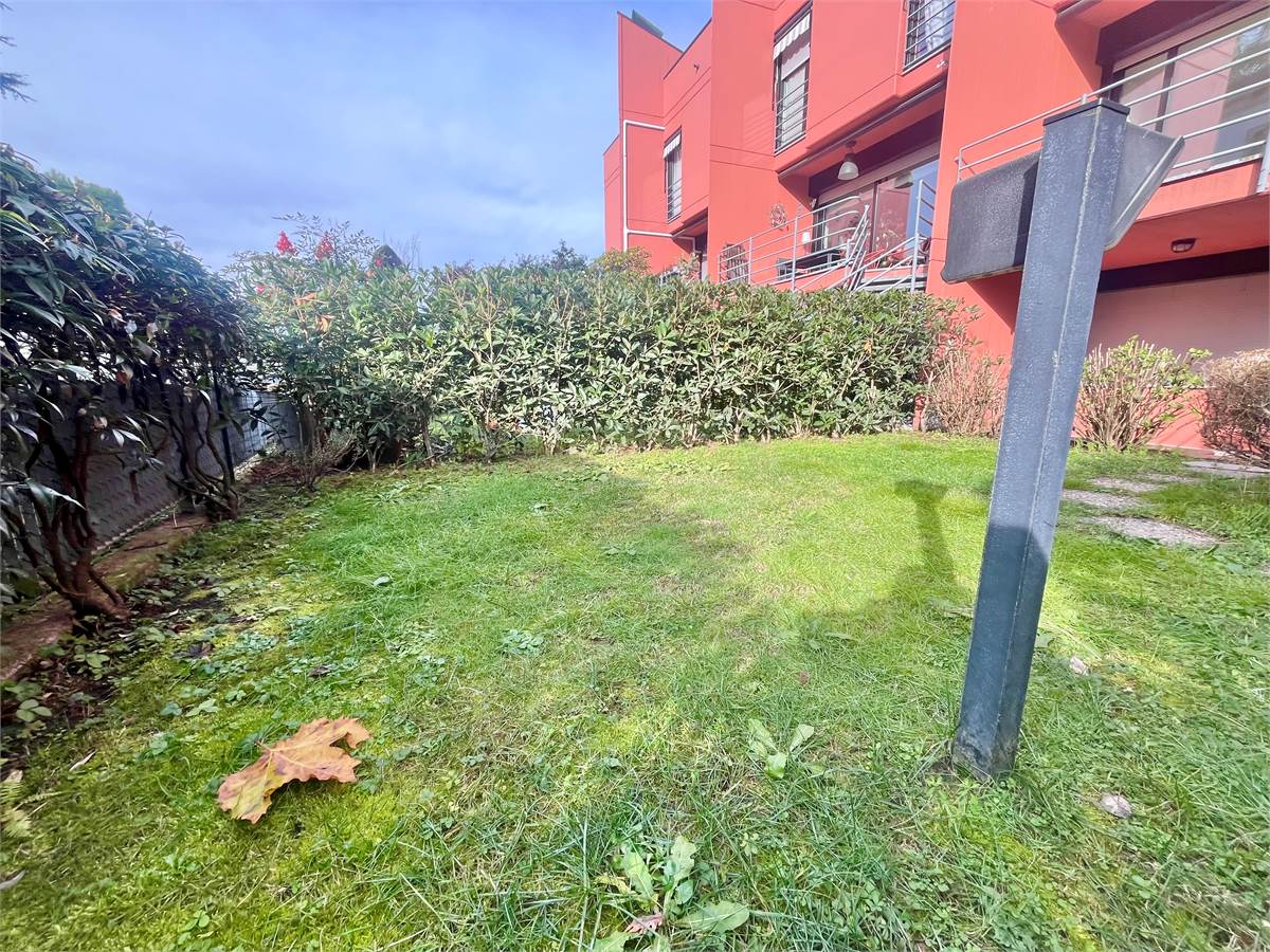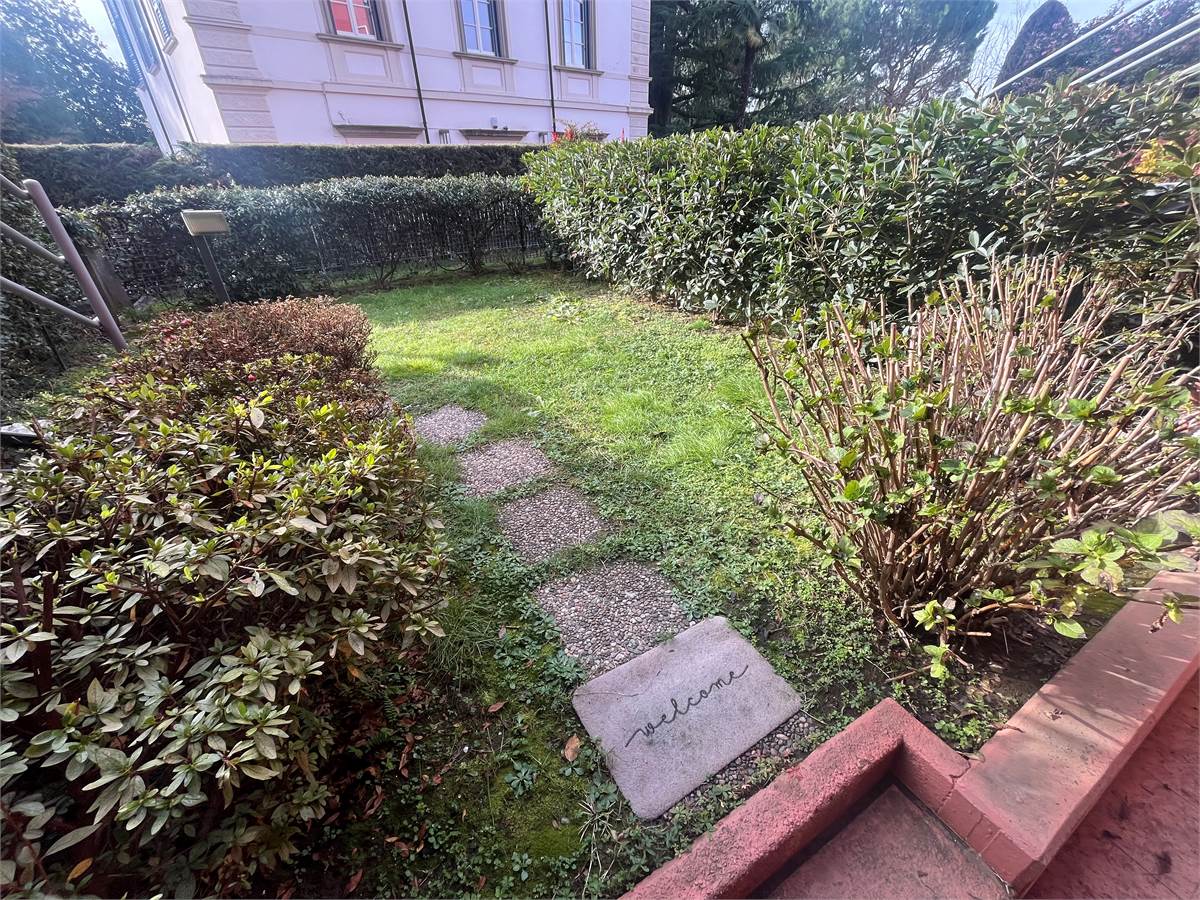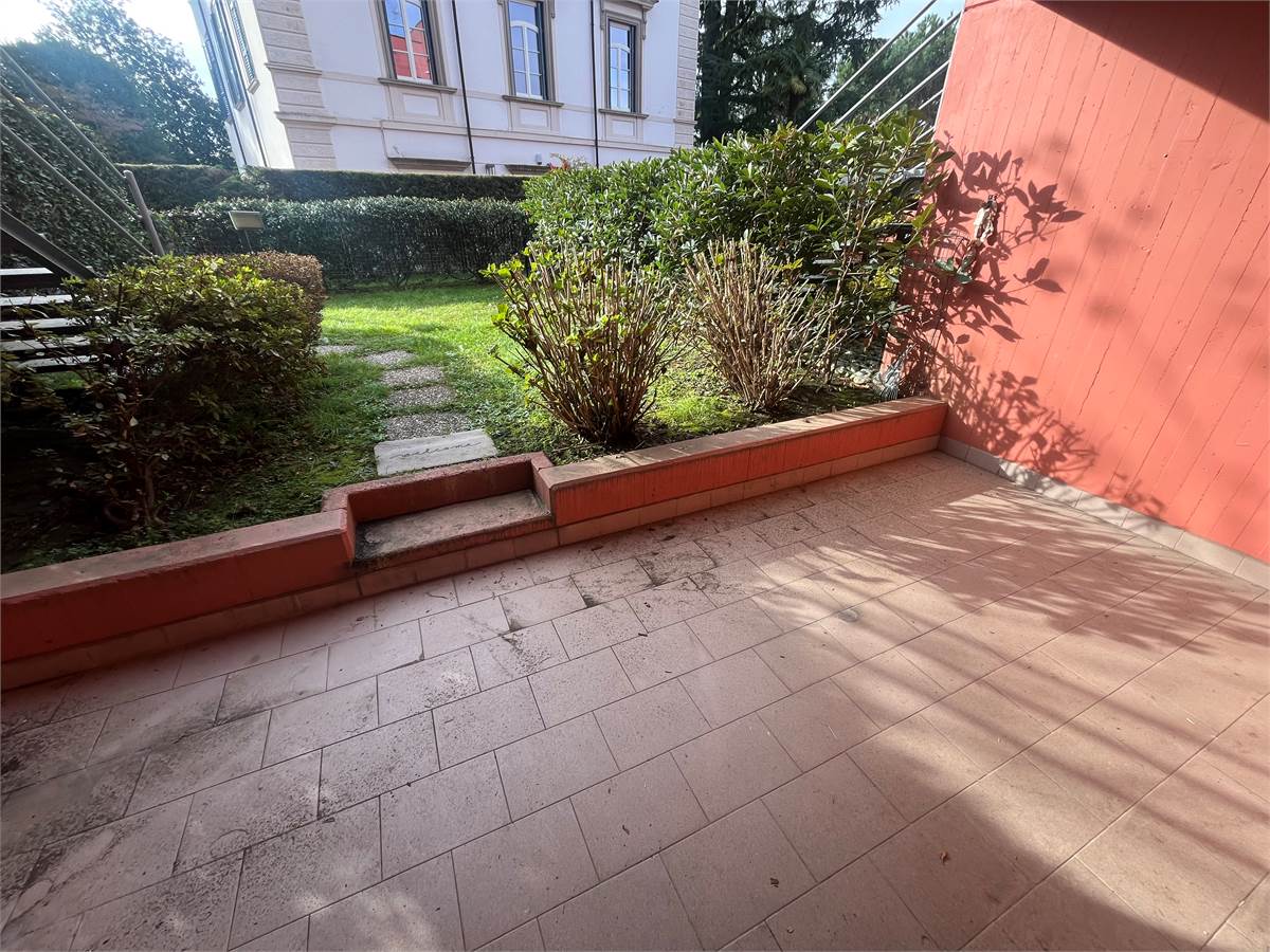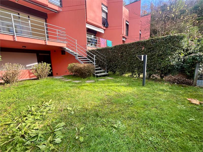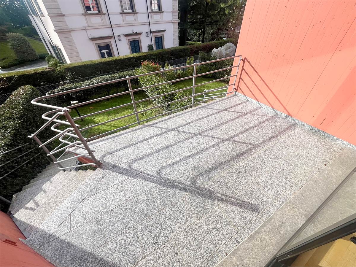 al piano primo luminoso soggiorno con camino, con accesso al secondo terrazzino coperto e al giardino di proprietà tramite una scala esterna, ampia cucina abitabile con balcone e ripostiglio;