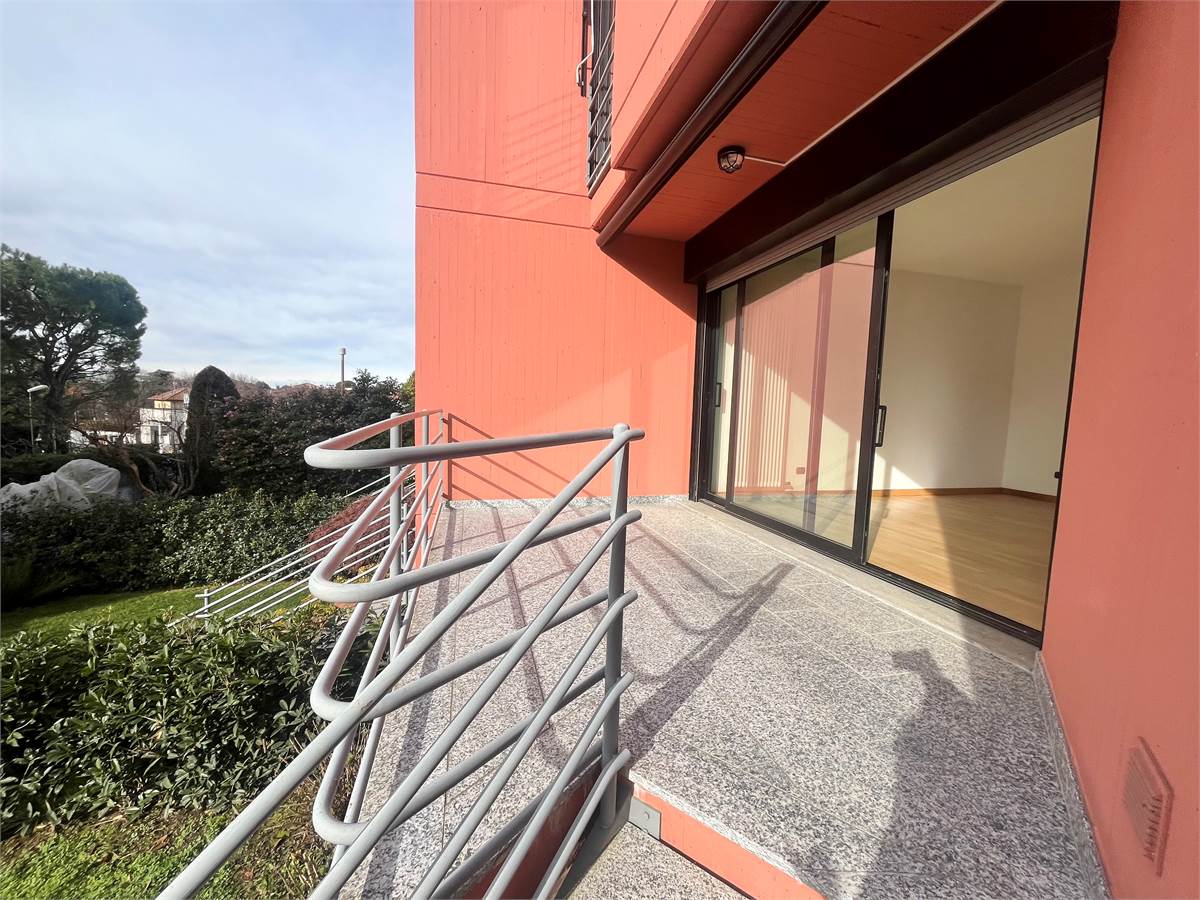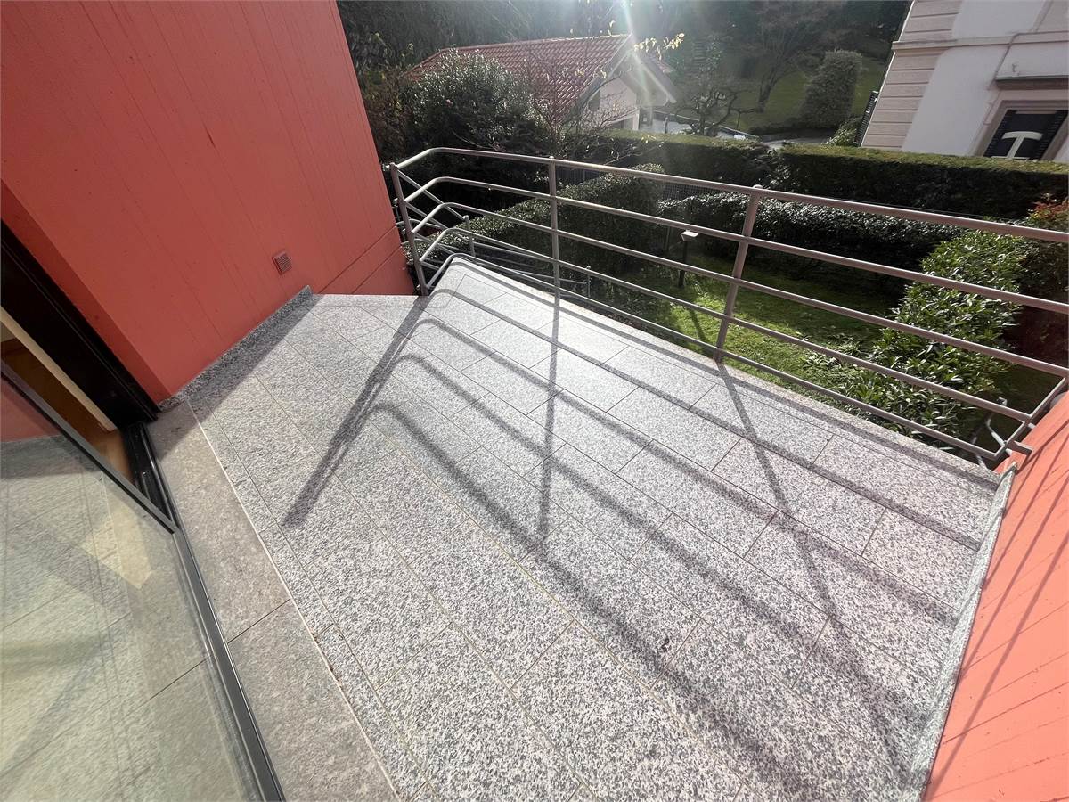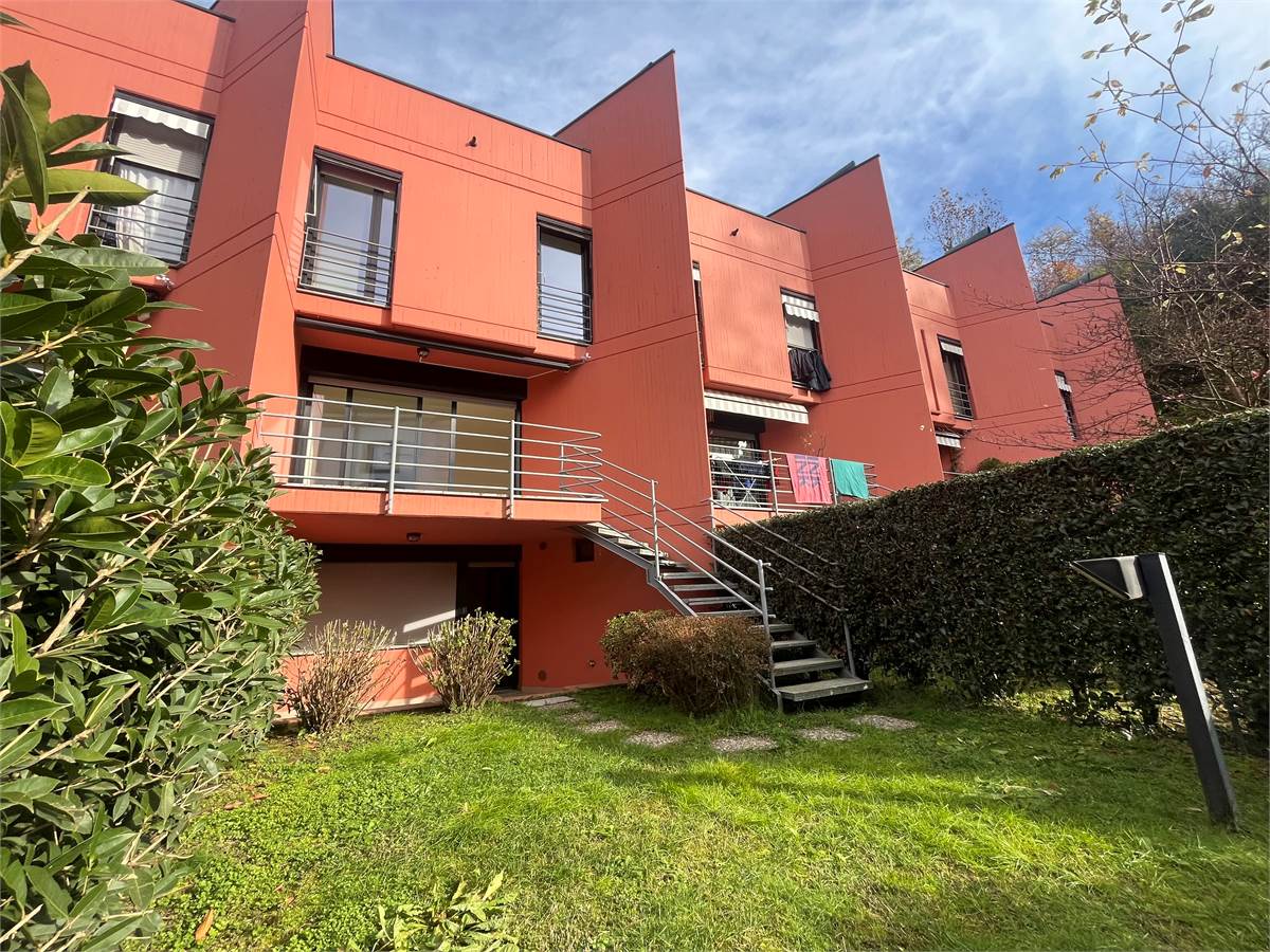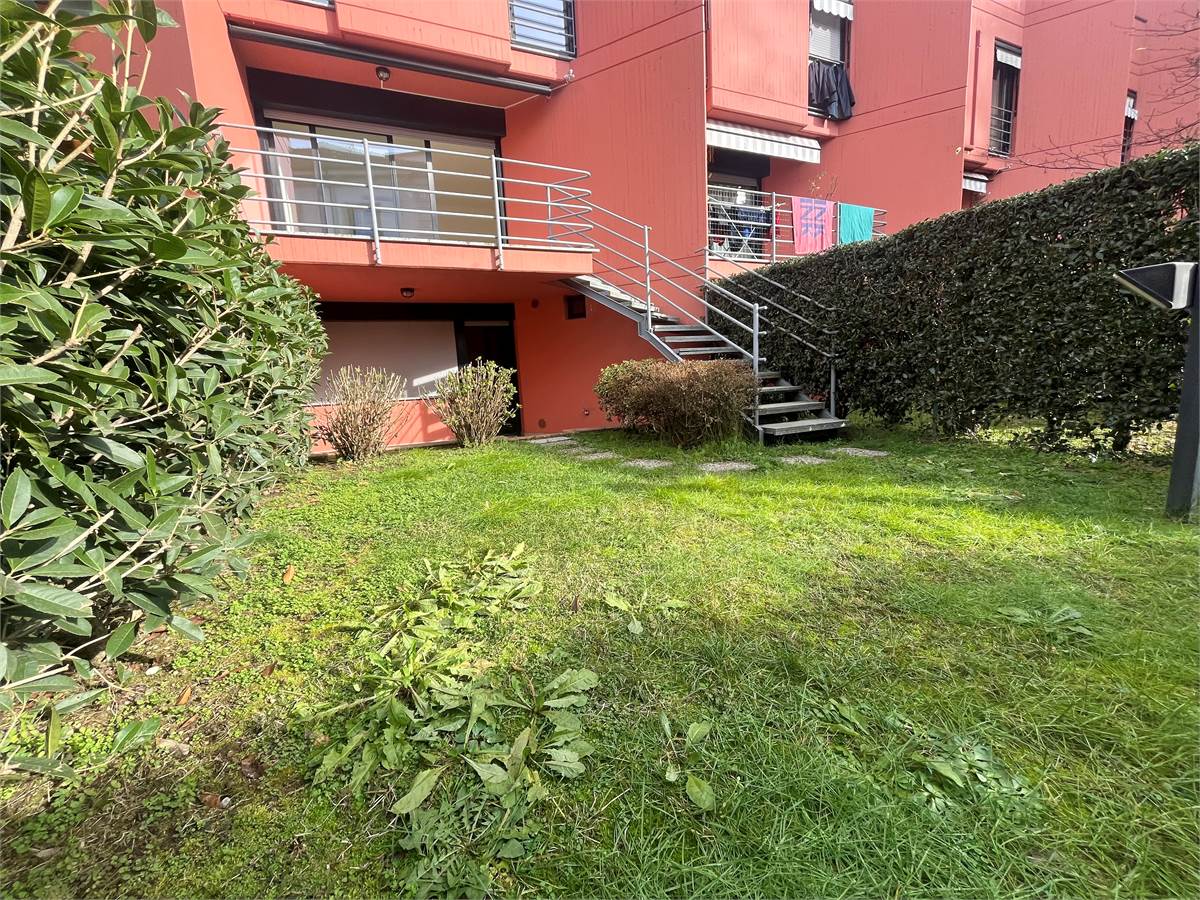 al piano primo luminoso soggiorno con camino, con accesso al secondo terrazzino coperto e al giardino di proprietà tramite una scala esterna, ampia cucina abitabile con balcone e ripostiglio;