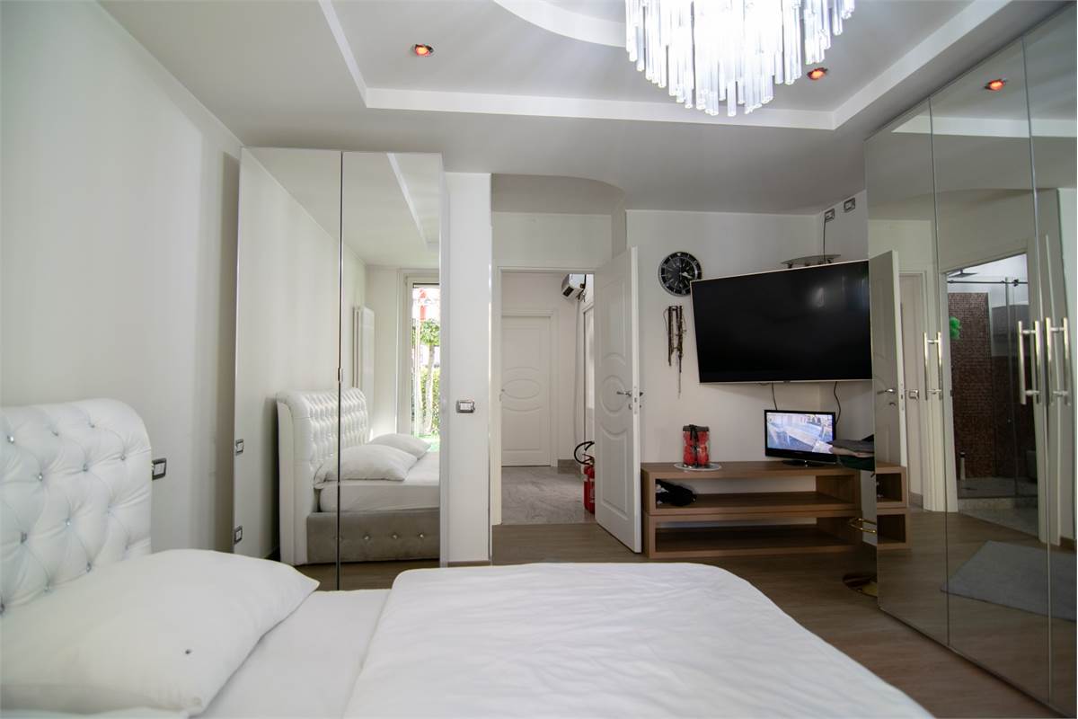 L’appartamento al piano terra, accessibile direttamente dal giardino privato, è composto da un soggiorno doppio con cucina a vista dal design elegante e perfettamente integrata nella zona living; due ampie camere matrimoniali e due bagni finestrati. Il giardino esterno privato con zona relax è ideale per pranzi/cene all’aperto. Completa l’appartamento un’ampia taverna con angolo cottura; una grande cantina; una lavanderia ed un bagno.