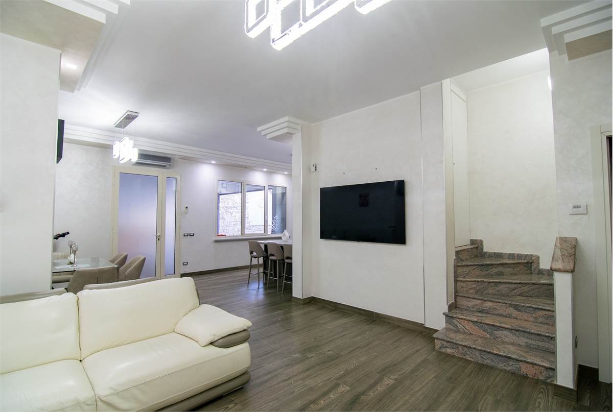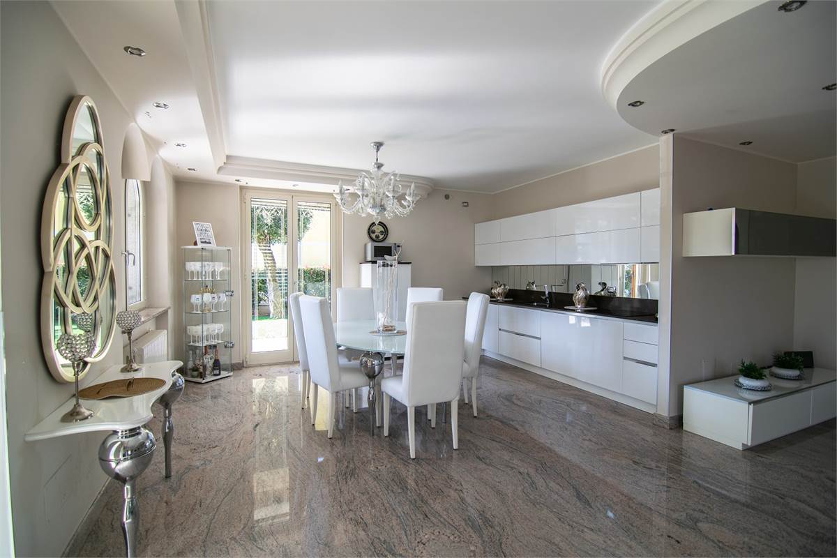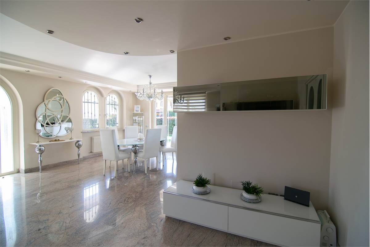 L’appartamento al piano terra, accessibile direttamente dal giardino privato, è composto da un soggiorno doppio con cucina a vista dal design elegante e perfettamente integrata nella zona living; due ampie camere matrimoniali e due bagni finestrati. Il giardino esterno privato con zona relax è ideale per pranzi/cene all’aperto. Completa l’appartamento un’ampia taverna con angolo cottura; una grande cantina; una lavanderia ed un bagno.