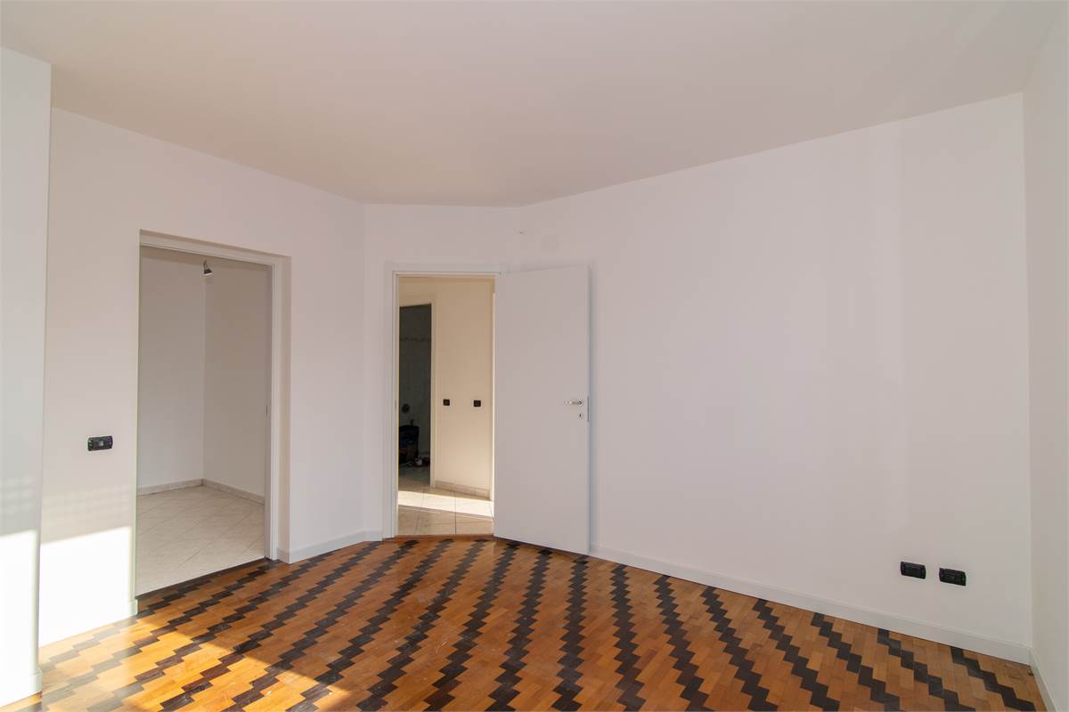 La zona notte offre due camere da letto: una matrimoniale con cabina armadio e una camera singola con accesso al balcone. Il bagno è finestrato e vi è la concreta possibilità di ricavare un secondo servizio, aumentando ulteriormente il comfort dell’abitazione.