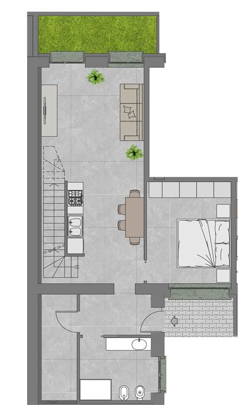Le soluzioni disponibili sono: due/tre locali progettati per offrire ambienti accoglienti, funzionali e personalizzabili ma il vero valore aggiunto sono le taverne collegate, perfette come area relax, locale hobby, studio o seconda zona living e i sottotetti sfruttabili con possibilità di creare ulteriore camera.