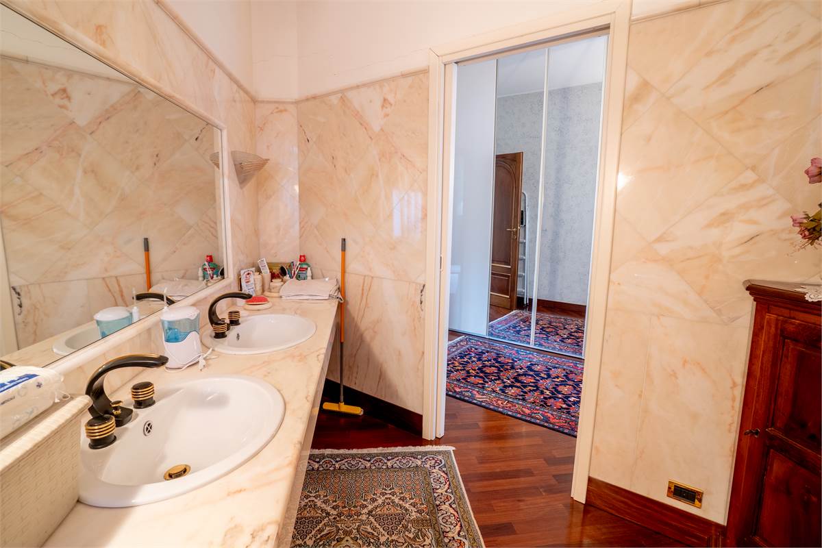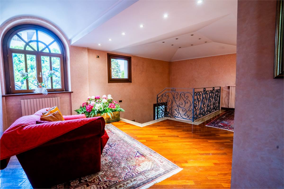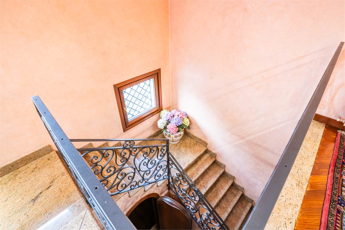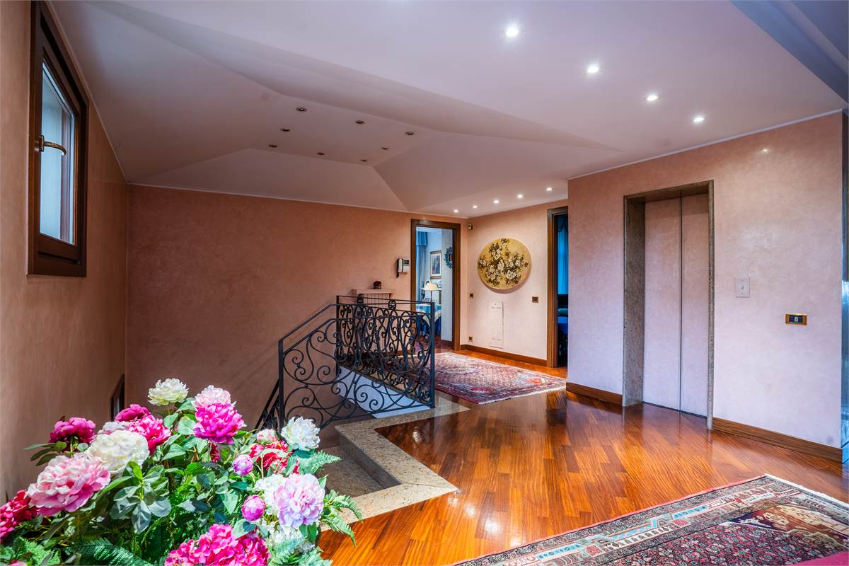 al PRIMO PIANO, accessibile sia con ascensore che con una scala in pietra naturale e ferro battuto, troviamo una camera padronale con bagno privato dotato di vasca idromassaggio, cabina armadio finestrata e accesso sul terrazzo privato; altre tre camere di cui una con bagno privato;