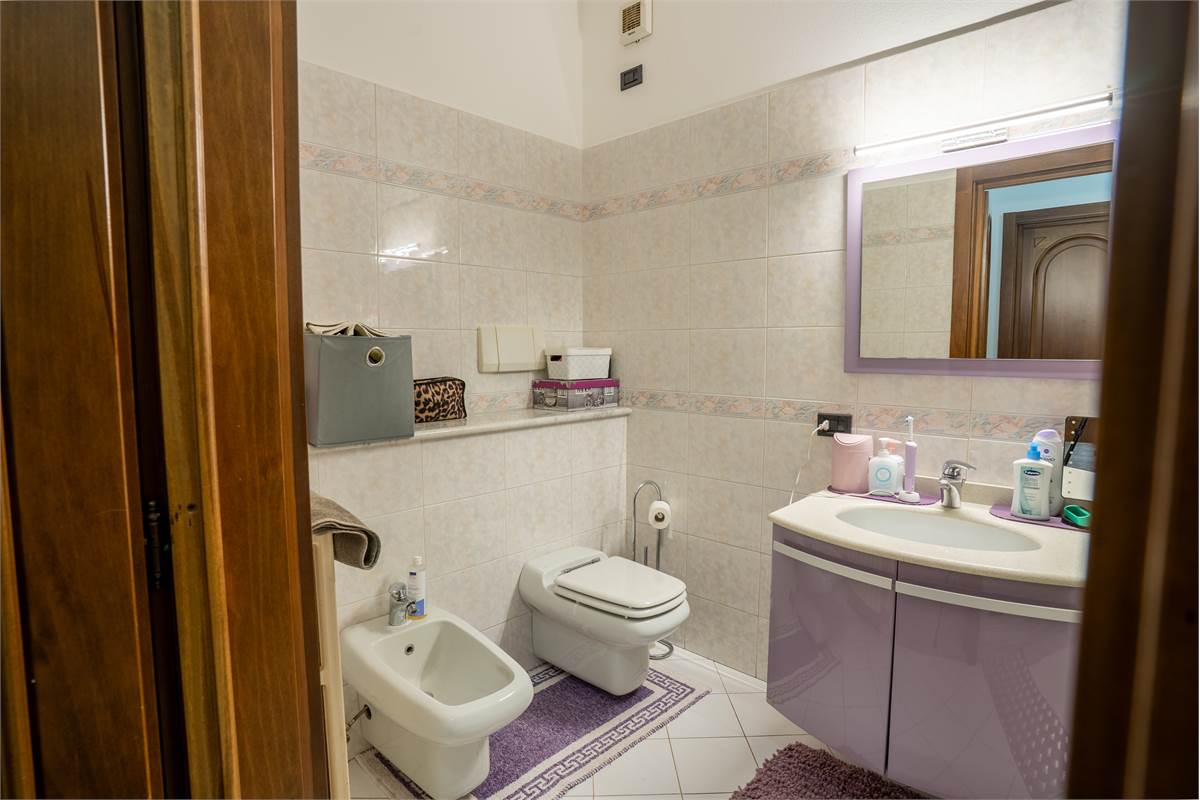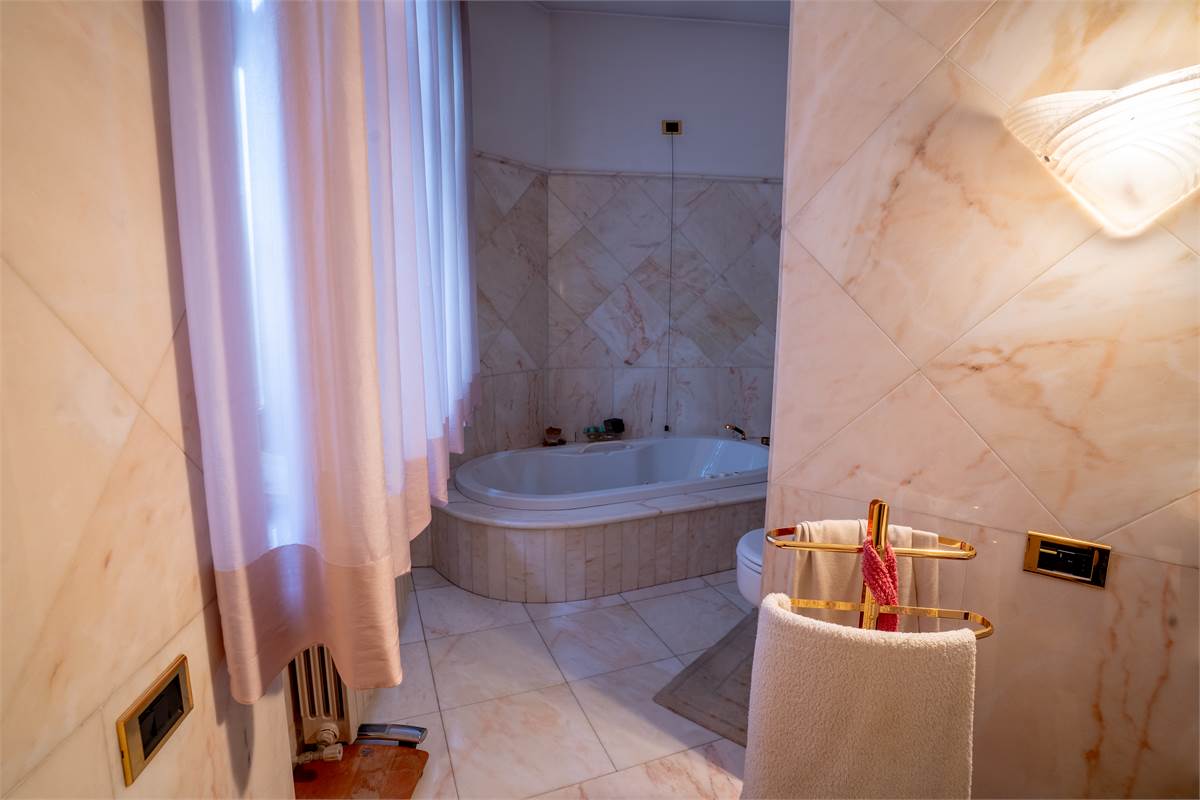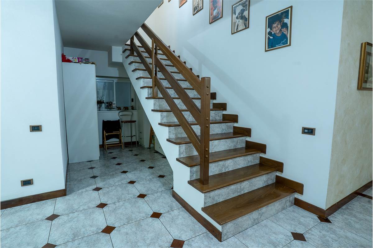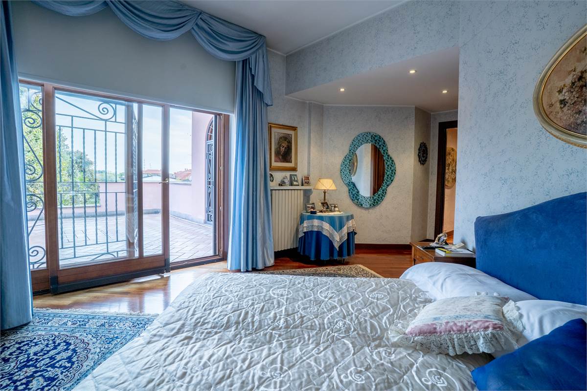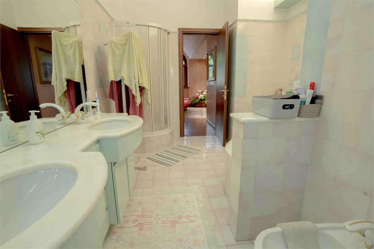 al PRIMO PIANO, accessibile sia con ascensore che con una scala in pietra naturale e ferro battuto, troviamo una camera padronale con bagno privato dotato di vasca idromassaggio, cabina armadio finestrata e accesso sul terrazzo privato; altre tre camere di cui una con bagno privato;