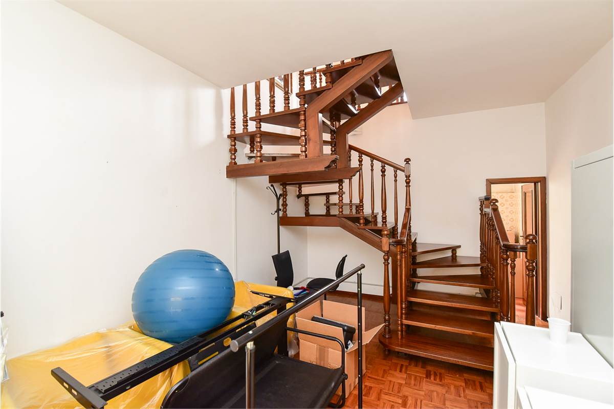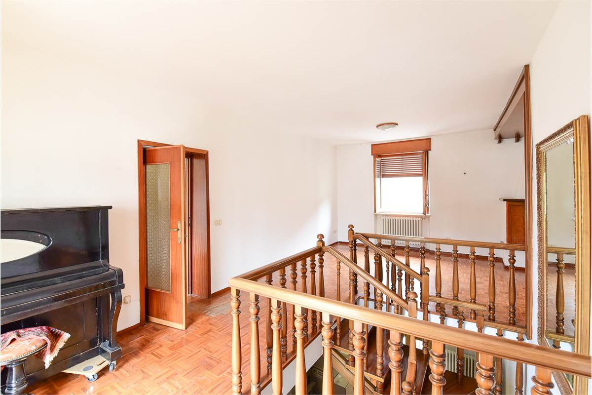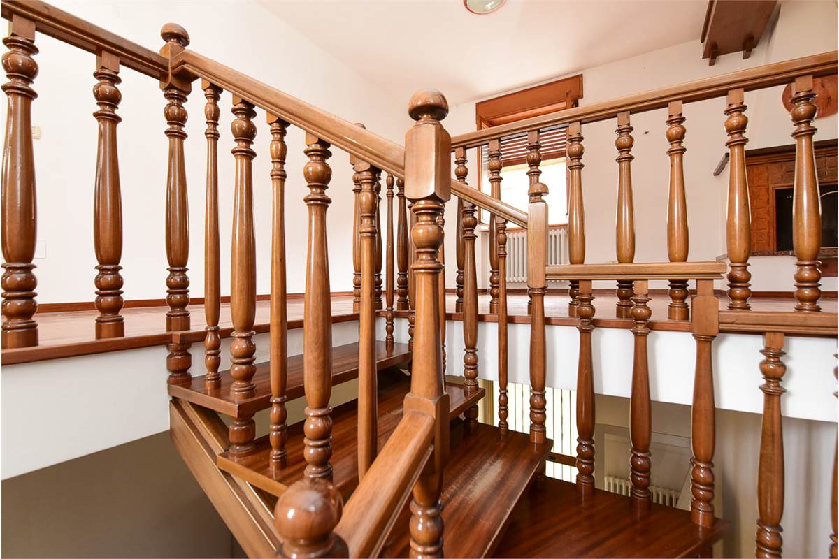 dal disimpegno d'ingresso, tramite una scala d'arredo, si accede al piano superiore dove troviamo un ampio e luminoso soggiorno doppio con balcone, una cucina abitabile, due camere, due bagni entrambi finestrati e ripostiglio.