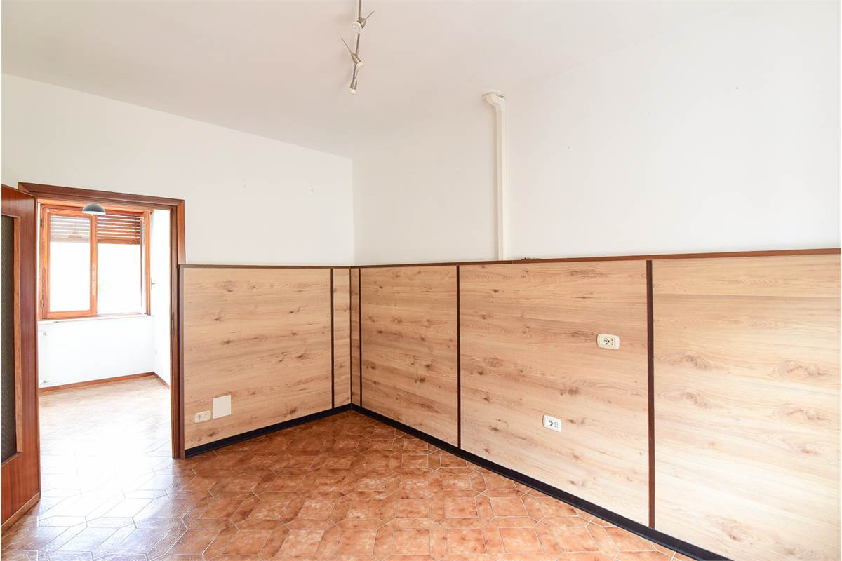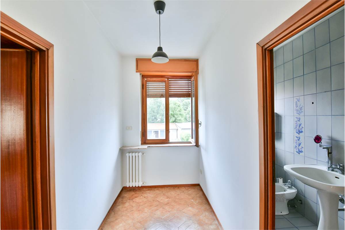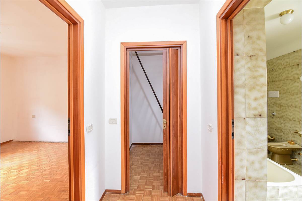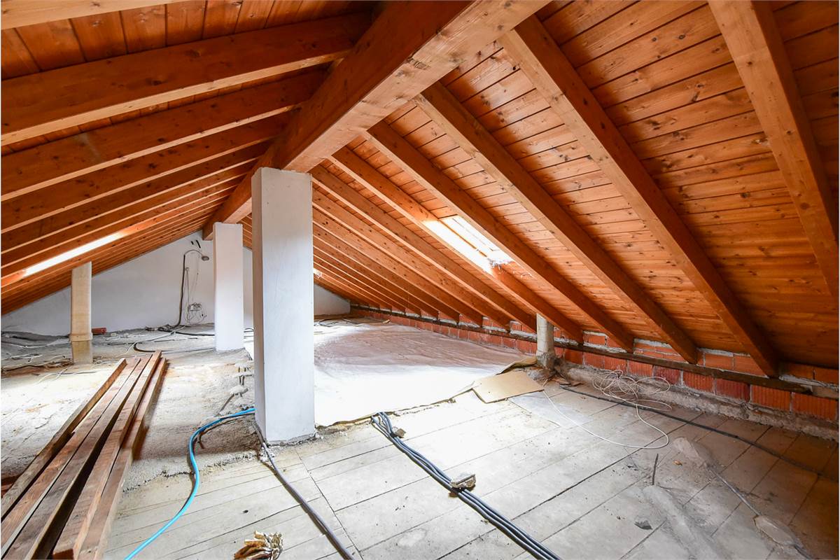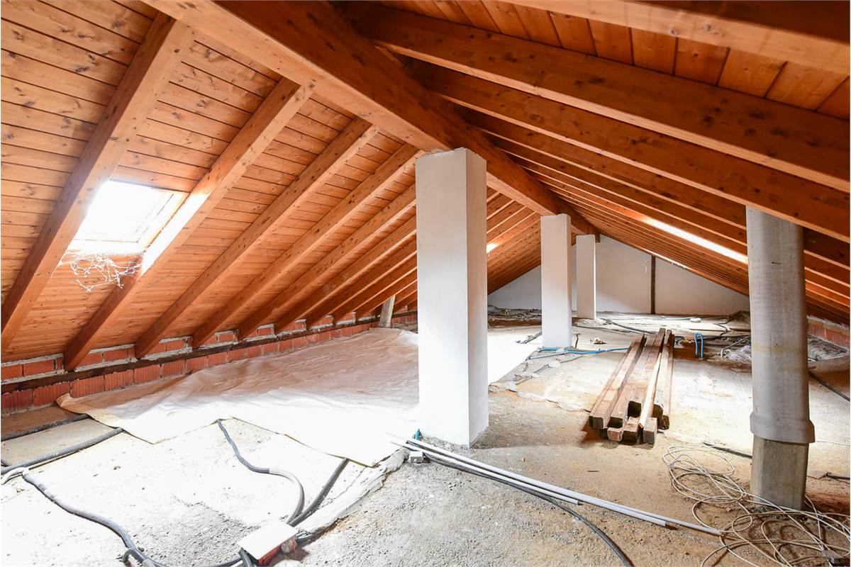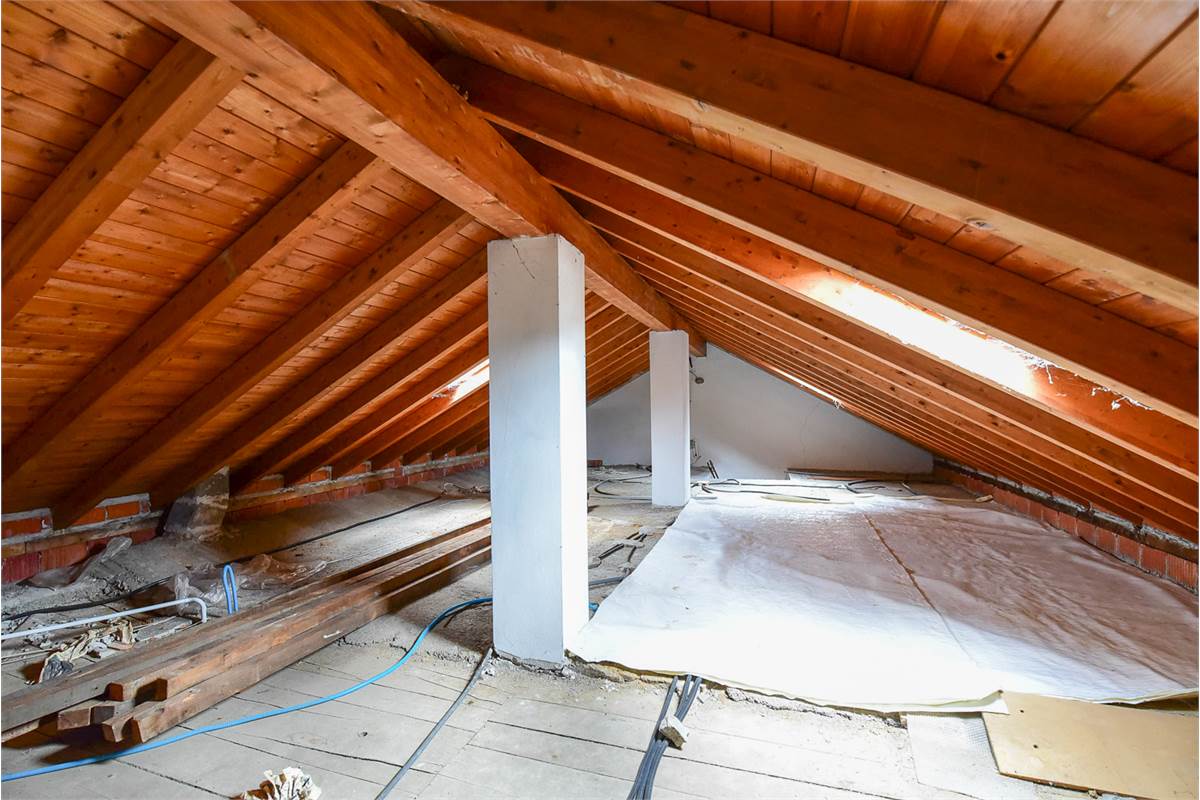 Nel ripostiglio, creando una scala interna, si potrebbe accedere al sottotetto rifinito con travi a vista in legno.