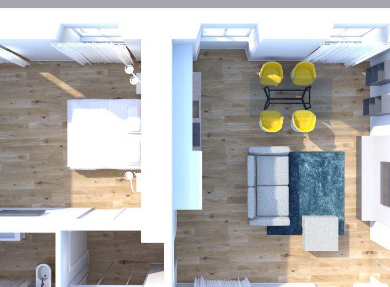 L'appartamento é sito al primo piano con doppia esposizione ed è composto da: ingresso, soggiorno con cucina a vista, camera matrimoniale, bagno finestrato e ballatoio comune ad uso dell’immobile.