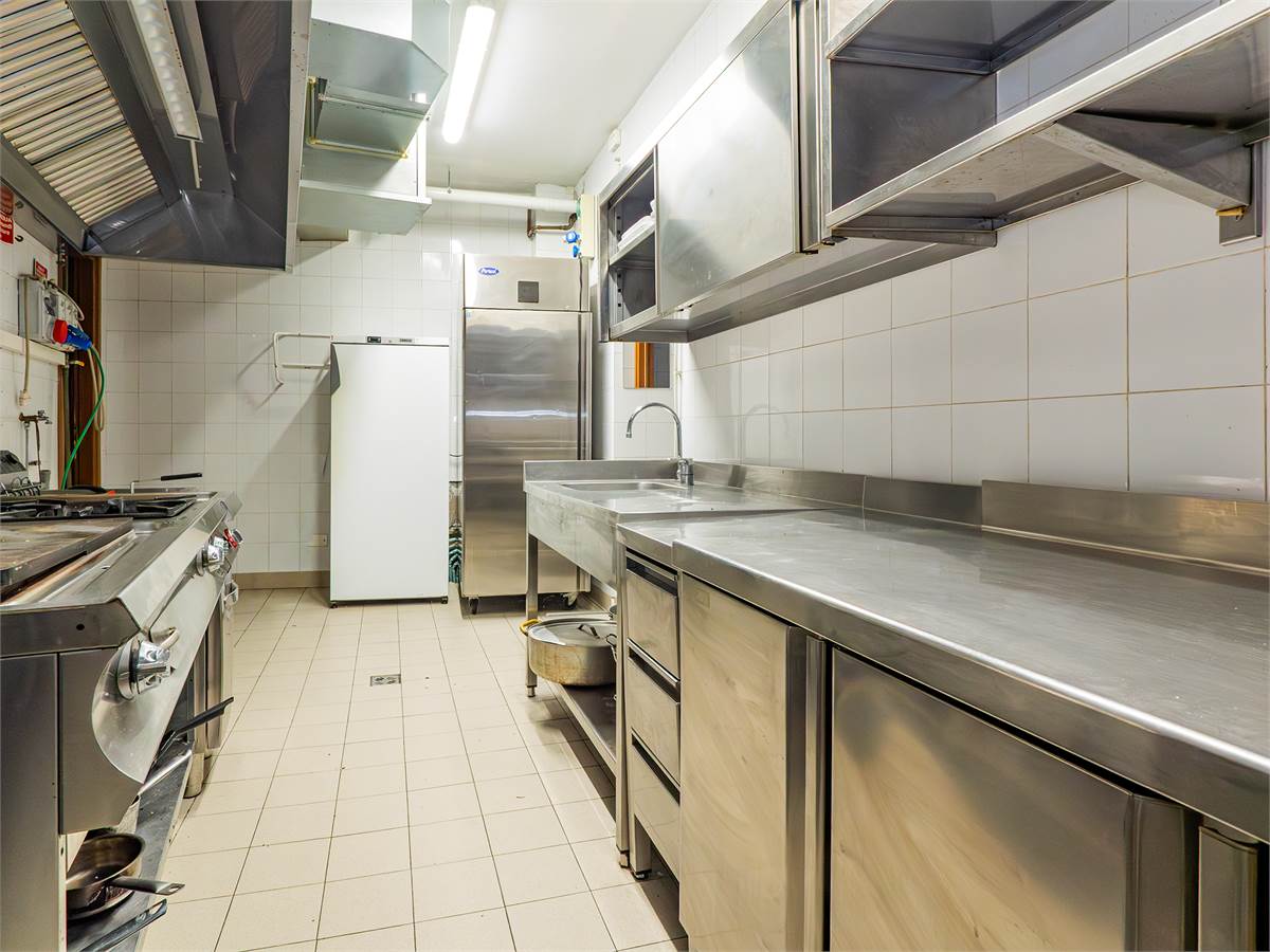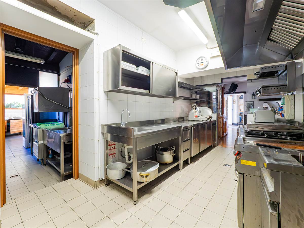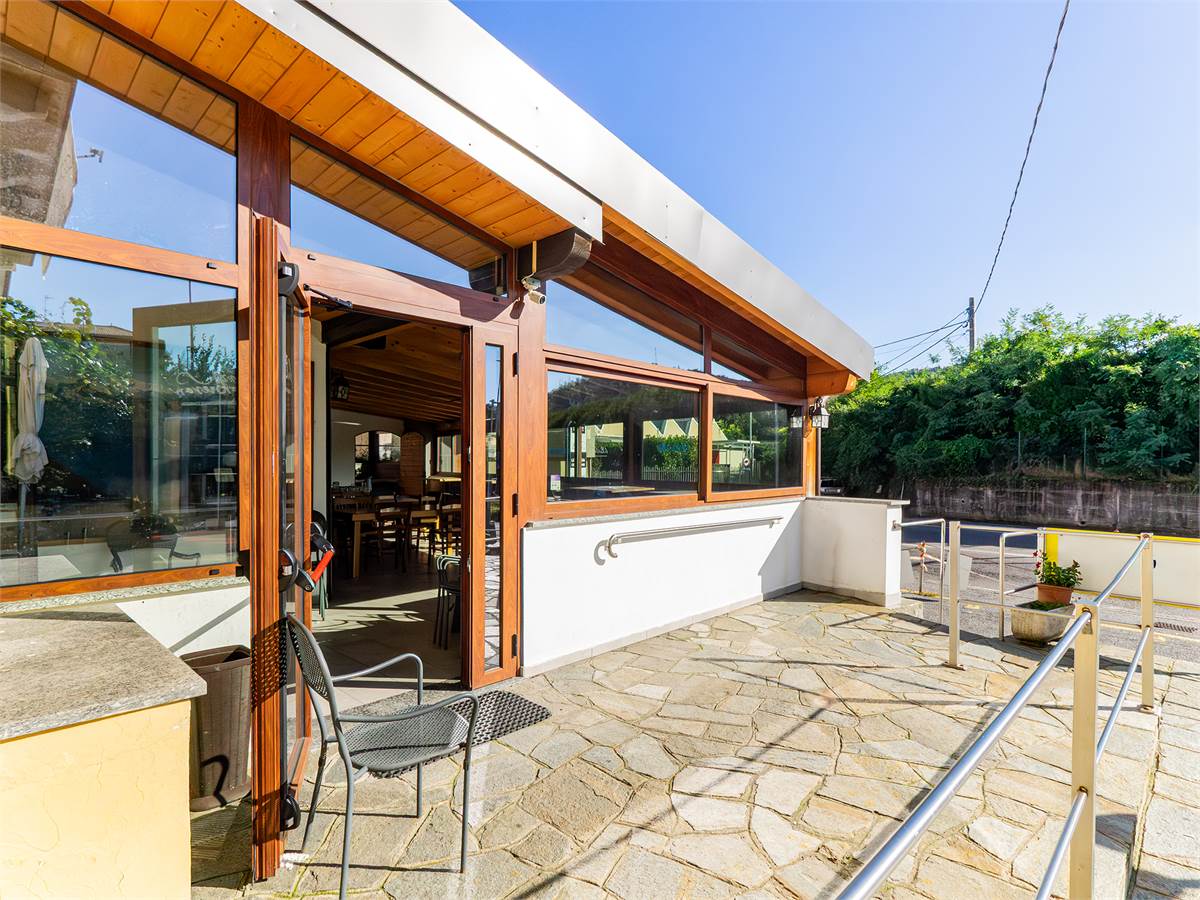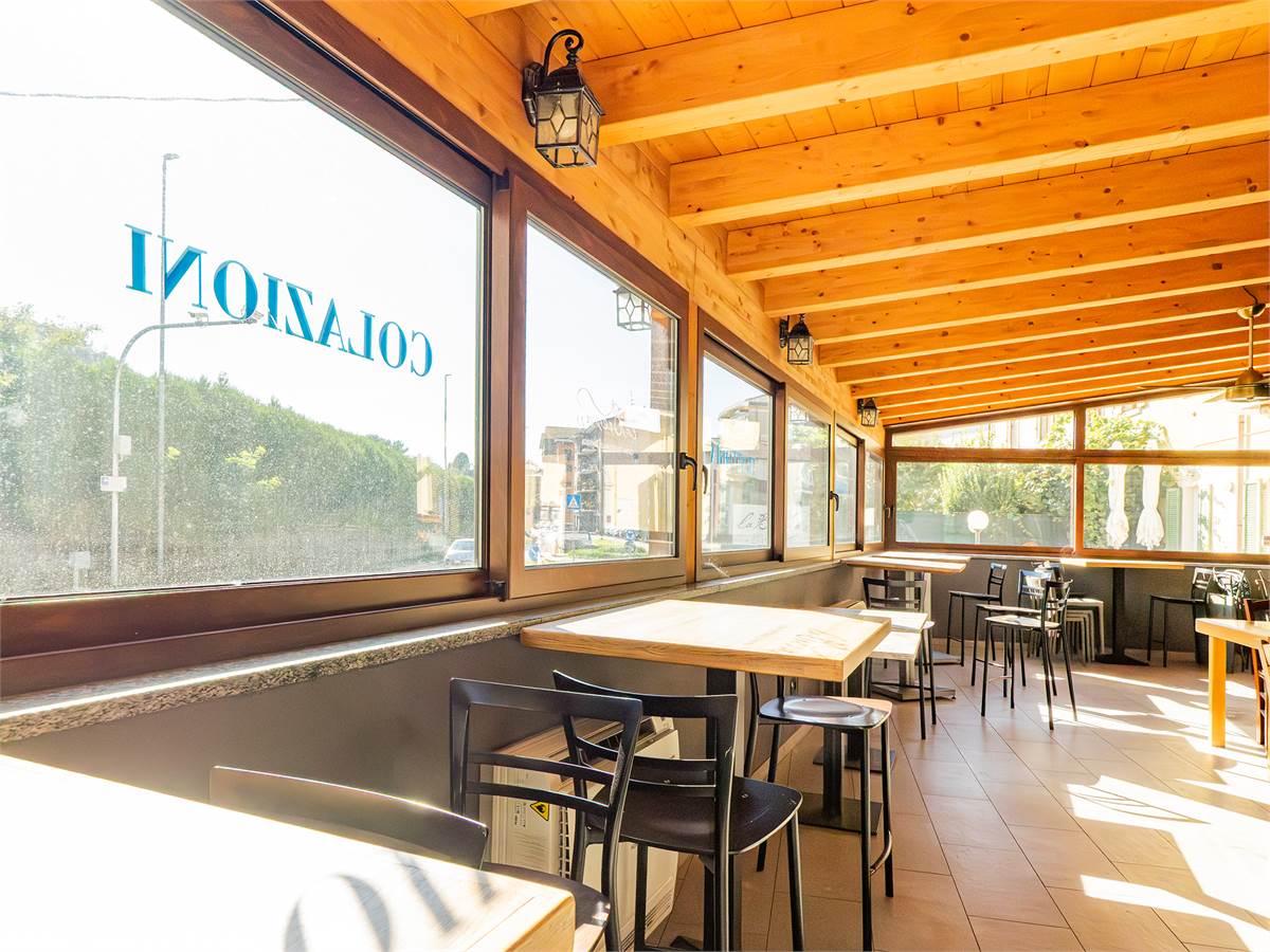 L'immobile è composto da tre sale interne finemente arredate di cui una adibita a bar; un'ampia veranda coperta e climatizzata, utilizzabile tutto l'anno, anche durante l'estate grazie alla perfetta ventilazione e luminosità; una cucina professionale a vista, ampia e perfettamente attrezzata con doppio ingresso; un magazzino/spogliatoio; un ripostiglio ed un bagno organizzato con suddivisione uomo/donna.