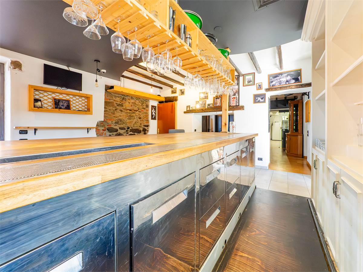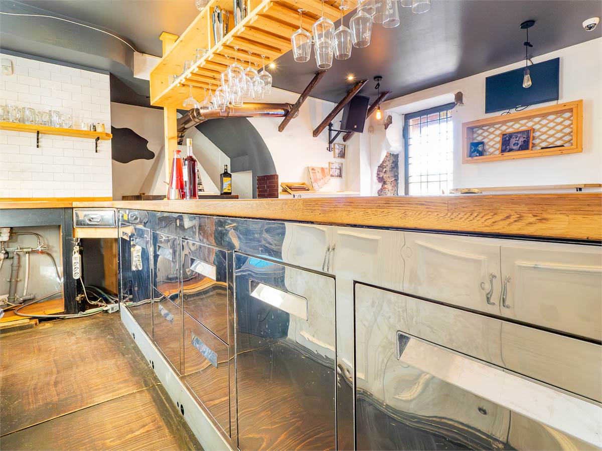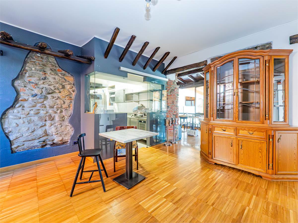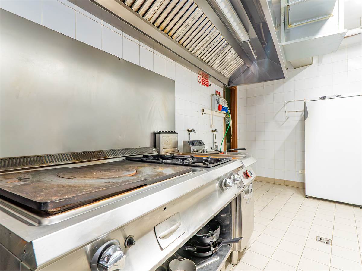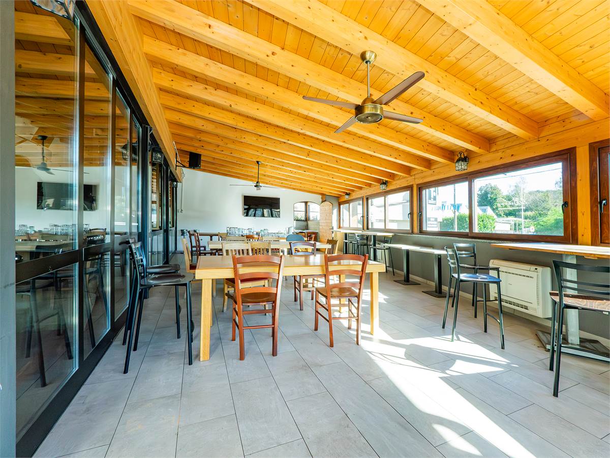L'immobile è composto da tre sale interne finemente arredate di cui una adibita a bar; un'ampia veranda coperta e climatizzata, utilizzabile tutto l'anno, anche durante l'estate grazie alla perfetta ventilazione e luminosità; una cucina professionale a vista, ampia e perfettamente attrezzata con doppio ingresso; un magazzino/spogliatoio; un ripostiglio ed un bagno organizzato con suddivisione uomo/donna.