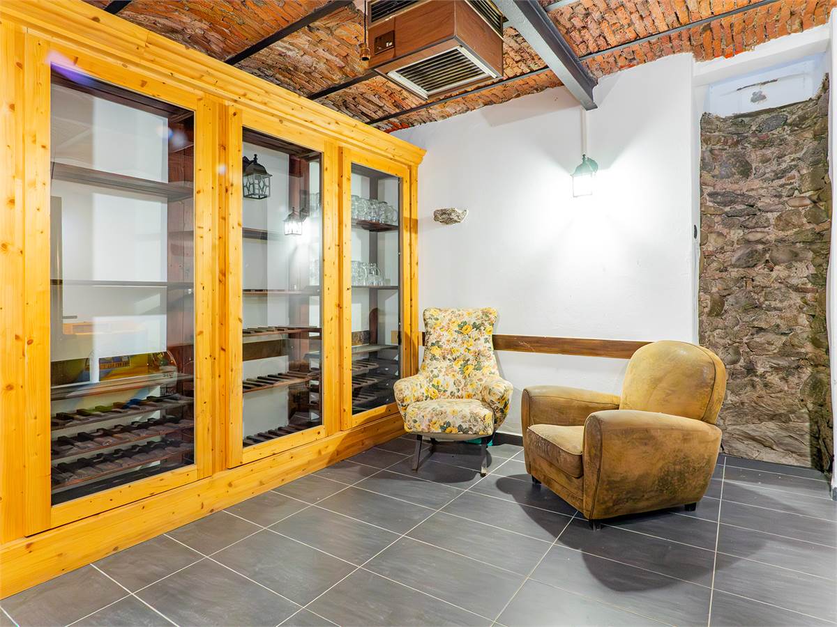 Al piano seminterrato troviamo una cantina con angolo vino, uno spazio suggestivo per la conservazione e degustazione.