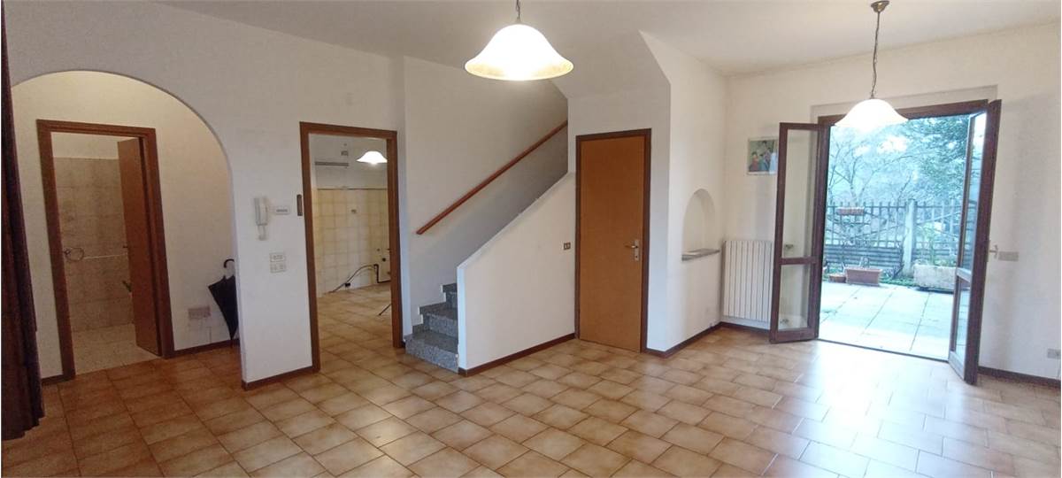 Riferimento Divina Servizi Immobiliari di Desio, via Alessandro Volta n. 2; per info: 328.79.38.829 - 0362.19.75.071; DESIO, in zona periferica, ma comunque comoda per raggiungere i servizi primari (scuole, poste, municipio, centro storico, Villa Tittoni, stazione, ecc.) e secondari che offre il paese e ben collegata con le principali vie di comunicazione in particolare con la strada statale 35 e 36, PROPONIAMO in VENDITA SPLENDIDA VILLETTA A SCHIERA di TESTA, con ampio giardino privato piastrellato, senza spese condominiali suddivisa su tre livello abitativi (piano terra, piano primo e taverna oltre a box e cantina). L'immobile, in buone condizioni, è così suddiviso: ingresso indipendente da area esterna piantumata, porta blindata, ampio soggiorno finestrato e porta finestra che conduce all'are esterna sul retro dell'immobile. Un disimpegno accompagna al primo servizio al piano, finestrato e la cucina abitabile con porta finestra, con affaccio all'area esterna di proprietà. Una scala interna in muratura porta al piano primo dove sono presenti tre camere da letto (due delle quali con balcone) e un secondo bagno finestrato con doccia e vasca. Sempre a mezzo di una scala interna si arriva al piano taverna, molto ampia e vivibile, con camino, lavanderia e un comodo ripostiglio. La soluzione è completa di un vano cantina e di un box di 27mq. Tripla esposizione che permette di avere locali luminosi per tutto l'arco della giornata, infissi in legno con doppio vetro e persiane in legno. Riscaldamento autonomo con radiatori.