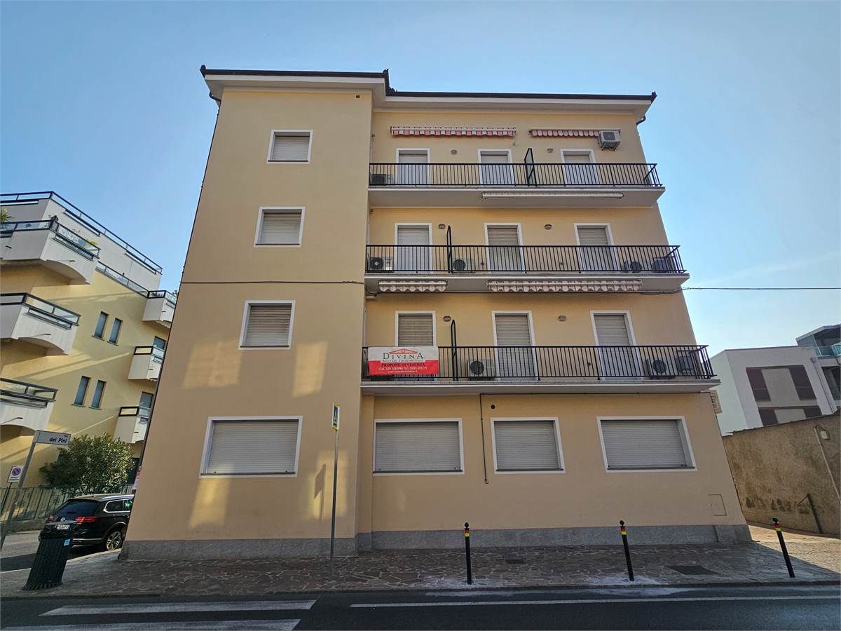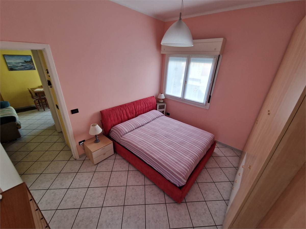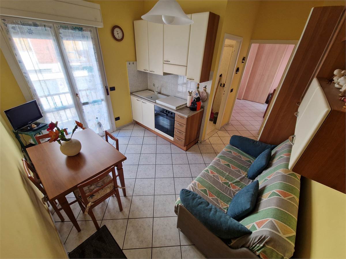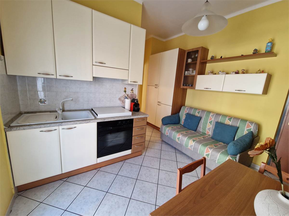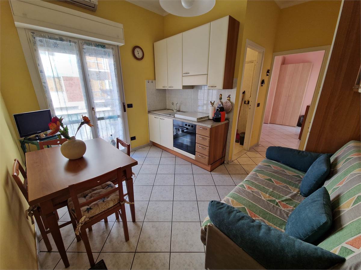 Internamente la disposizione è la seguente: ingresso in soggiorno con cucina a vista ed accesso al balcone, camera matrimoniale con balcone vista mare, bagno completo di box doccia e finestra.