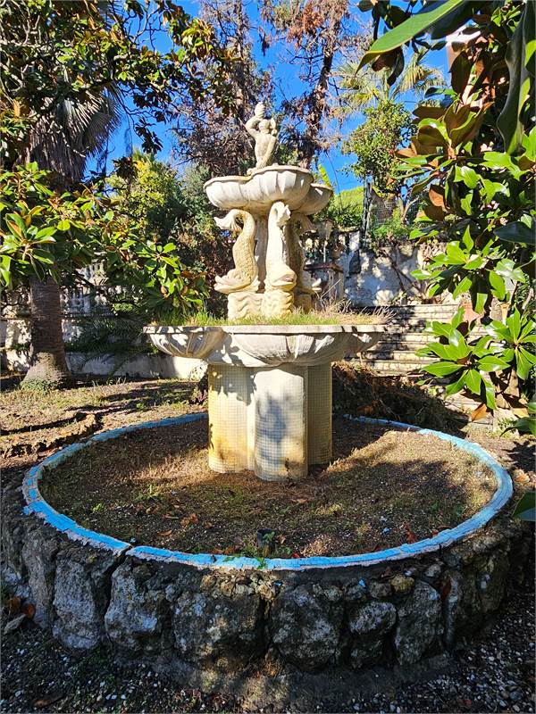 Circonda la proprietà un ampio giardino di 1500 mq, ornato da palme secolari e fontane decorative da cui ammirare una splendida vista mare da più punti della proprietà, spazi ideali per realizzare piscina, veranda o zona living esterna.
