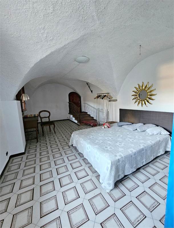 Al piano terra: soggiorno, cucina, camera da letto di 35 mq circa divisibile in due vani e bagno finestrato.