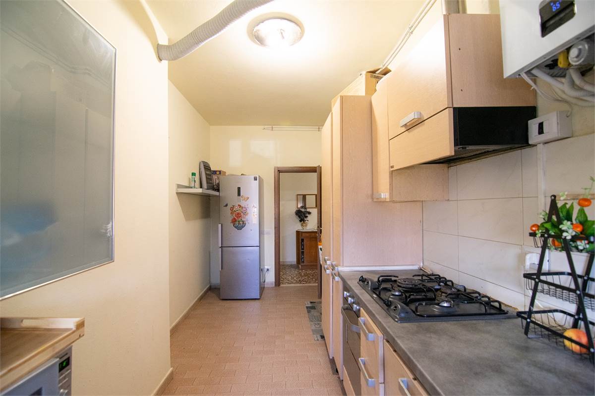 L'immobile è situato al secondo piano di una piccola palazzina ed è così composto: ampio soggiorno con balcone, cucina abitabile, disimpegno all'ingresso che conduce verso la zona notte, due ampie camere con accesso sul secondo balcone e un bagno.