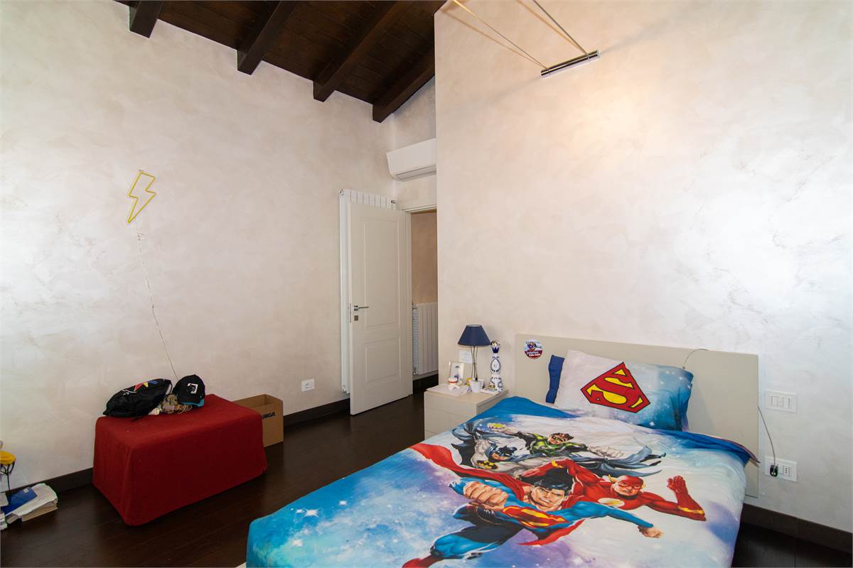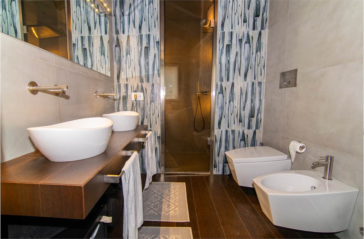 Al piano superiore troviamo tre camere di cui una matrimoniale con cabina armadio, bagno annesso e balcone, ed un ulteriore bagno.