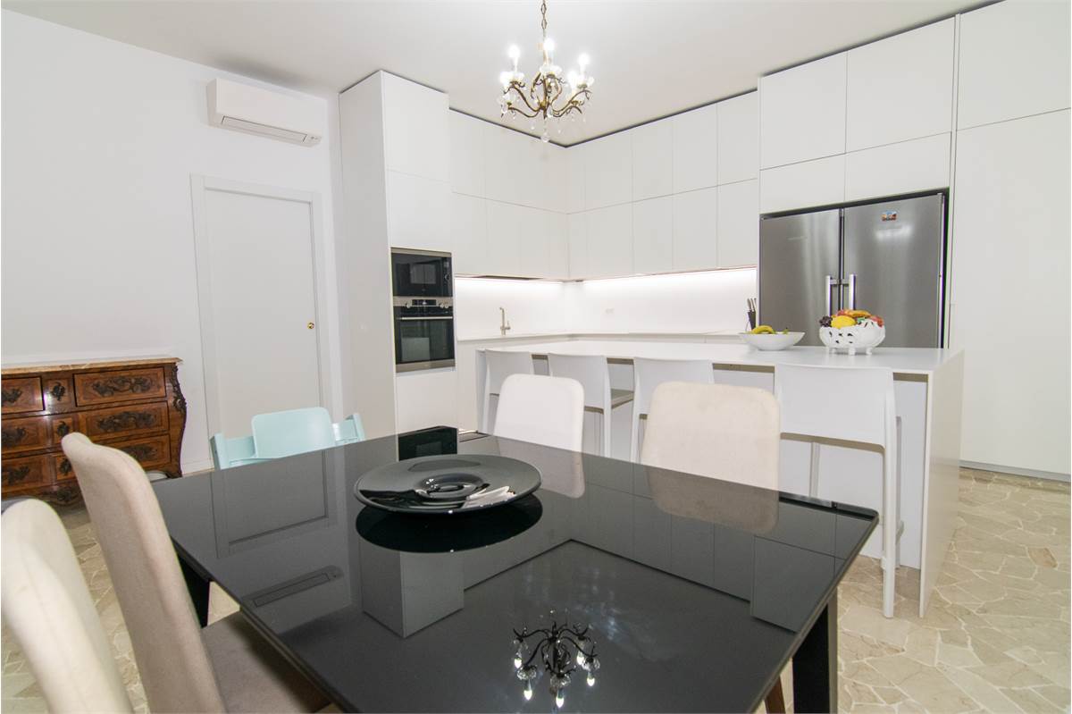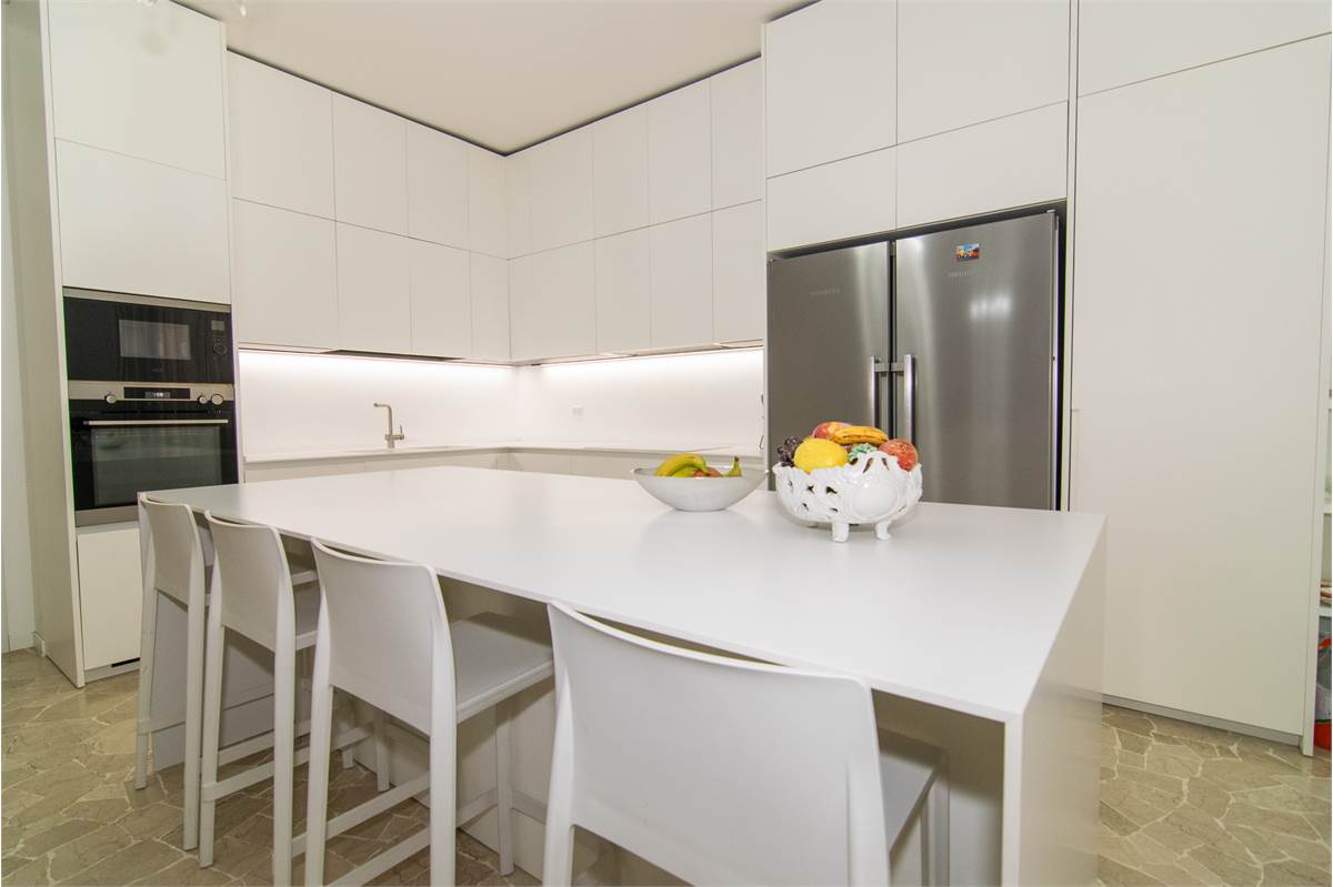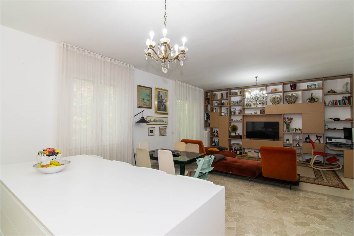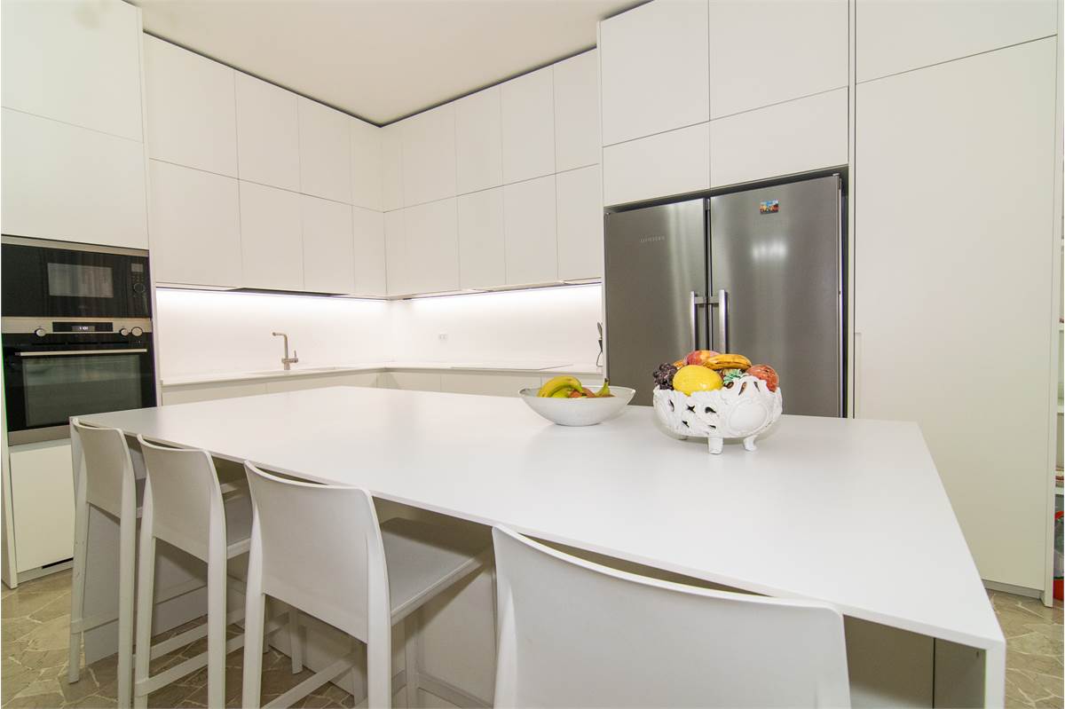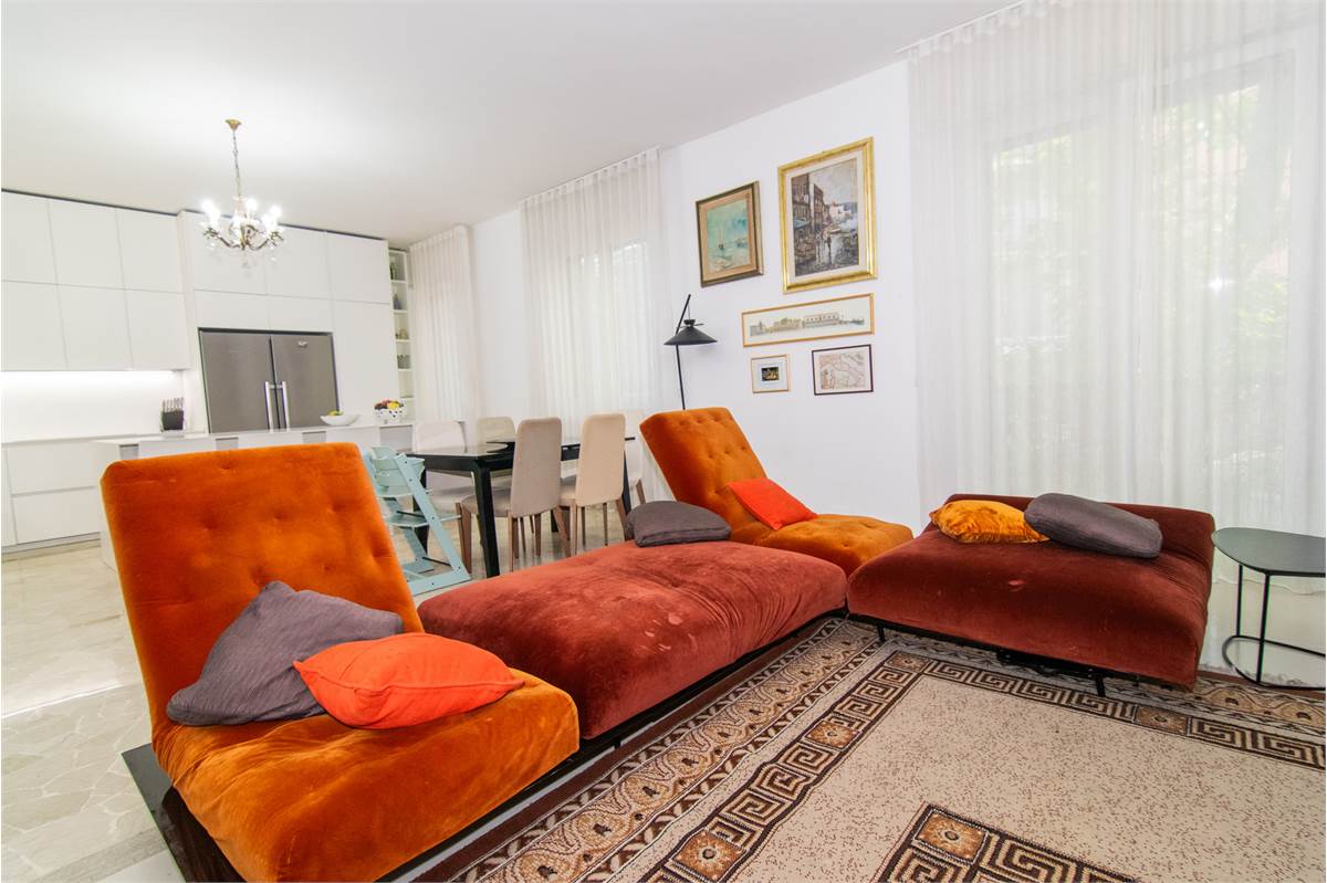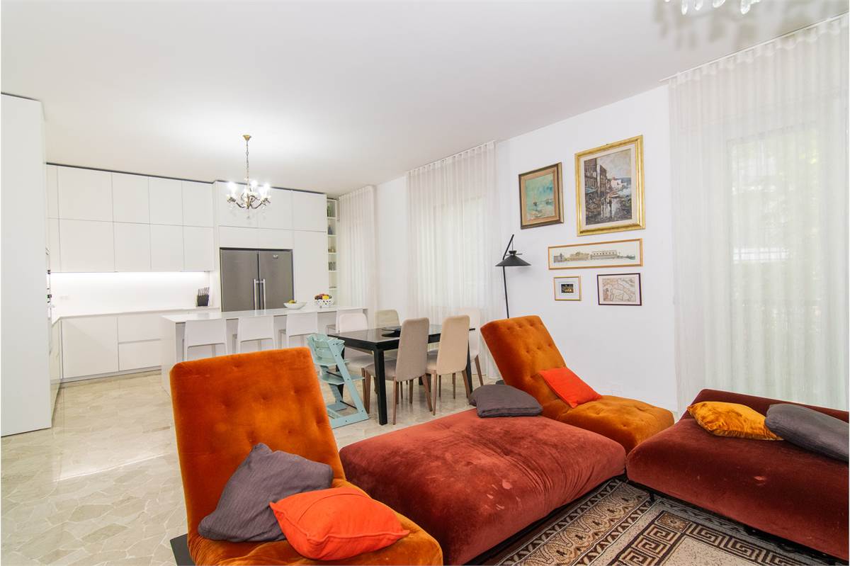L’appartamento si distingue per un elegante salone con cucina a vista, un ambiente luminoso e accogliente con sfogo esterno su due balconi.