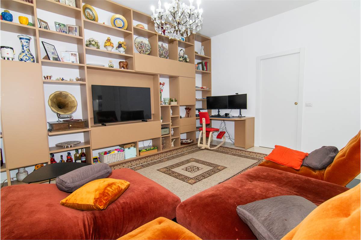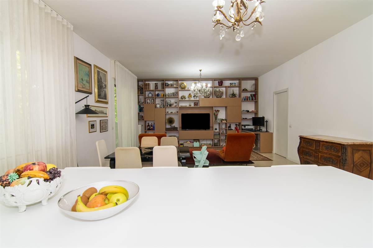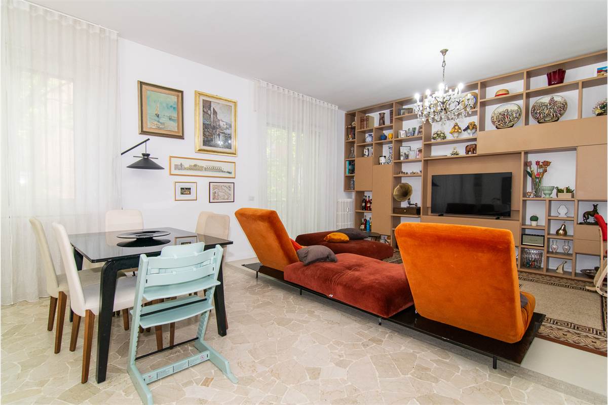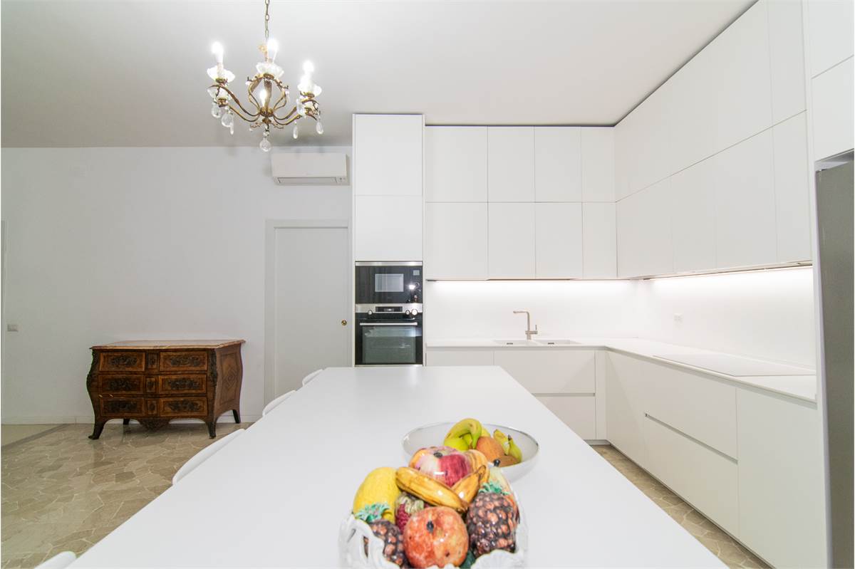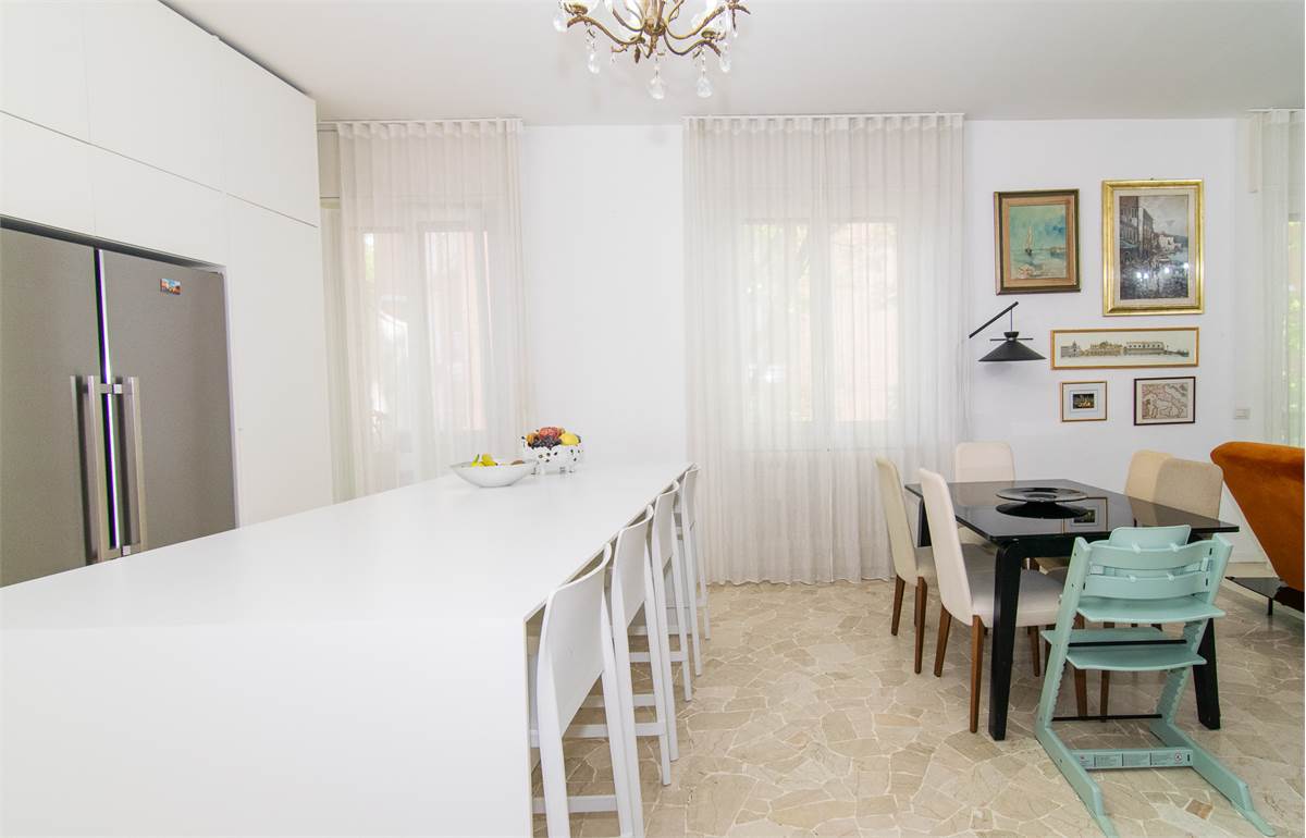 L’appartamento si distingue per un elegante salone con cucina a vista, un ambiente luminoso e accogliente con sfogo esterno su due balconi.