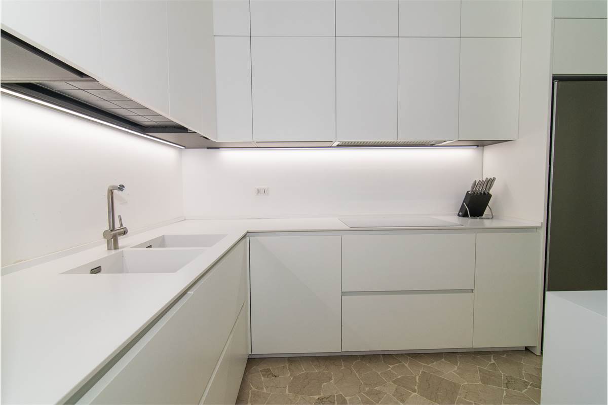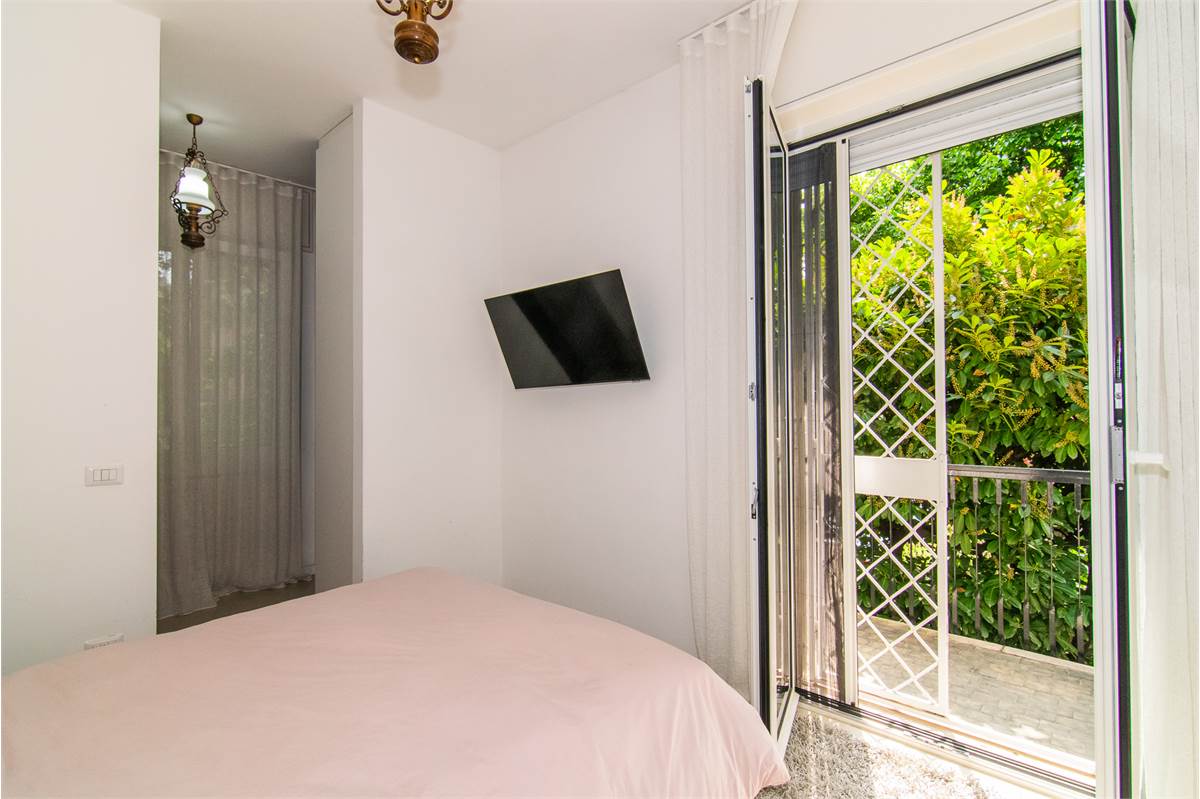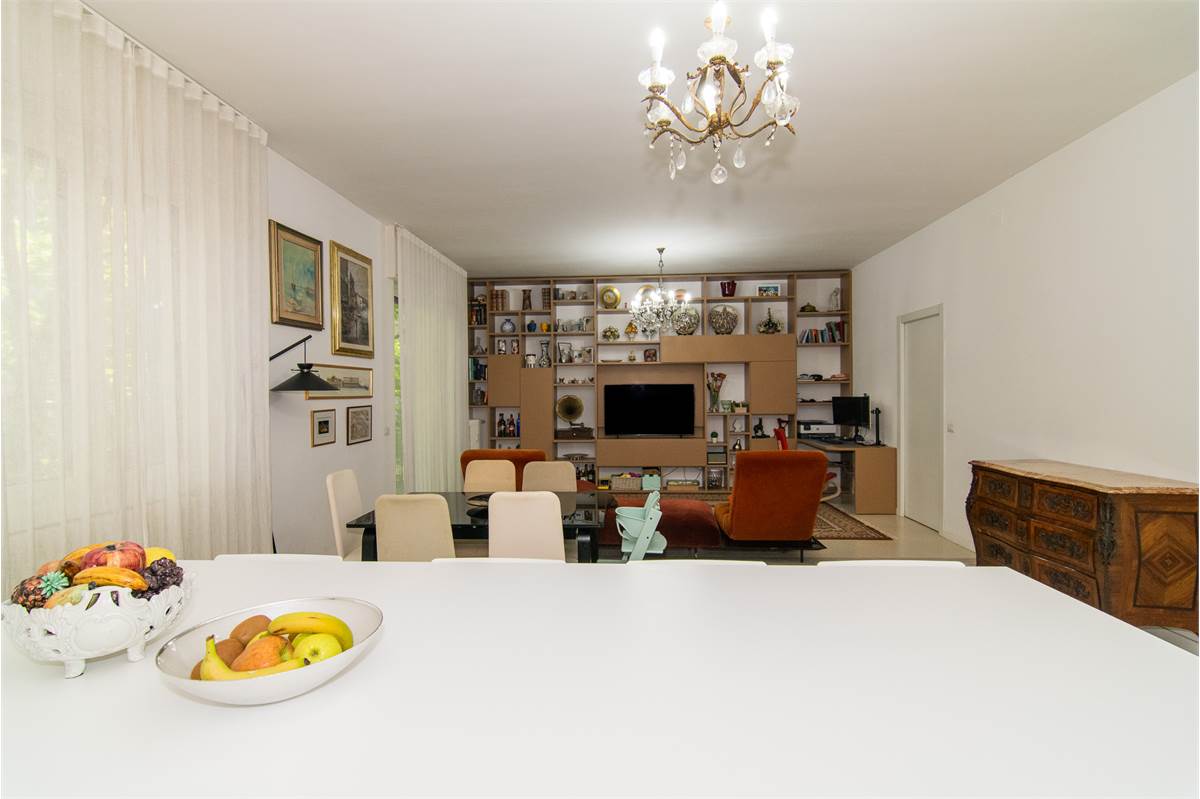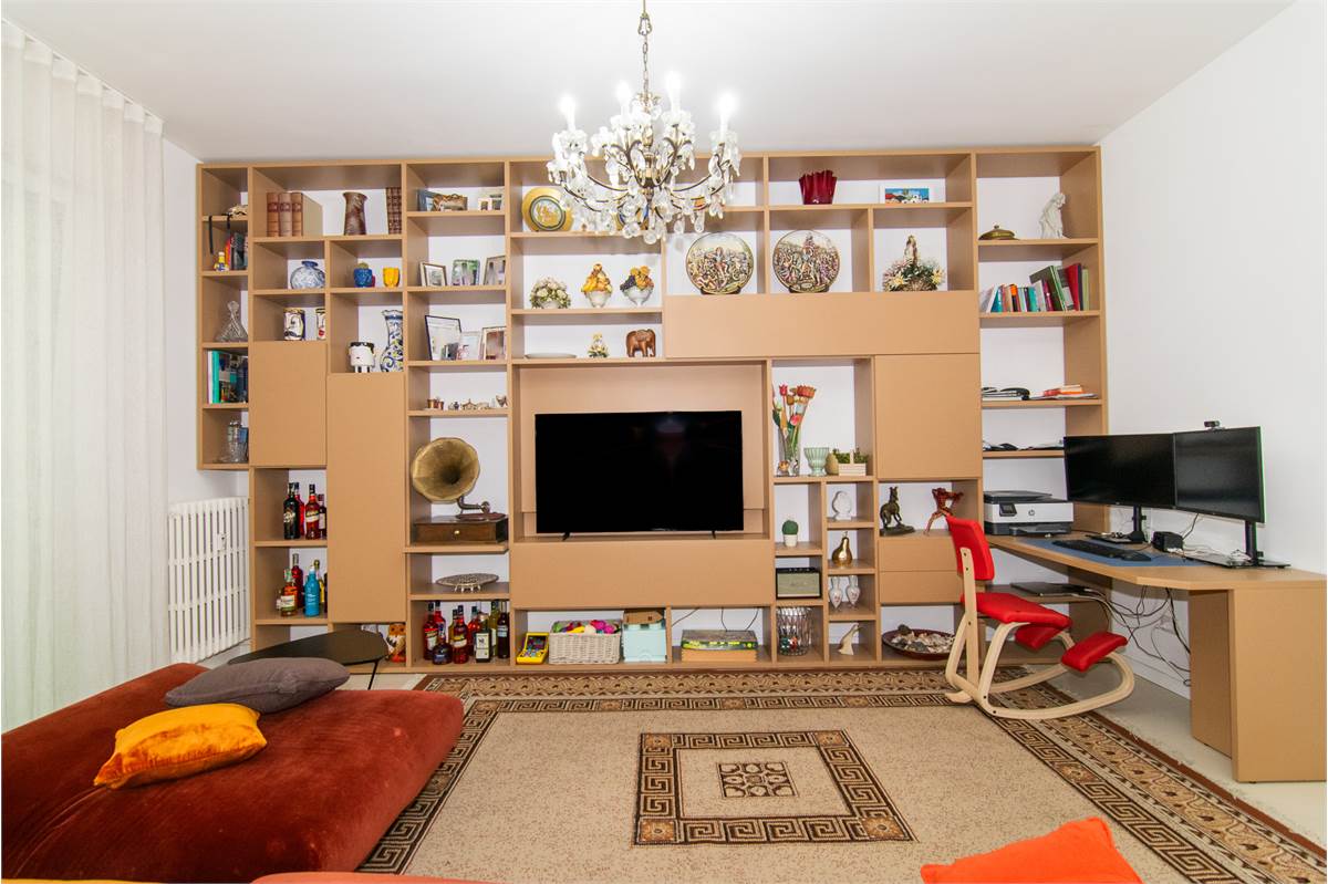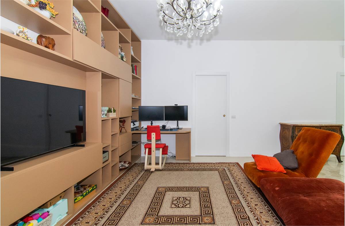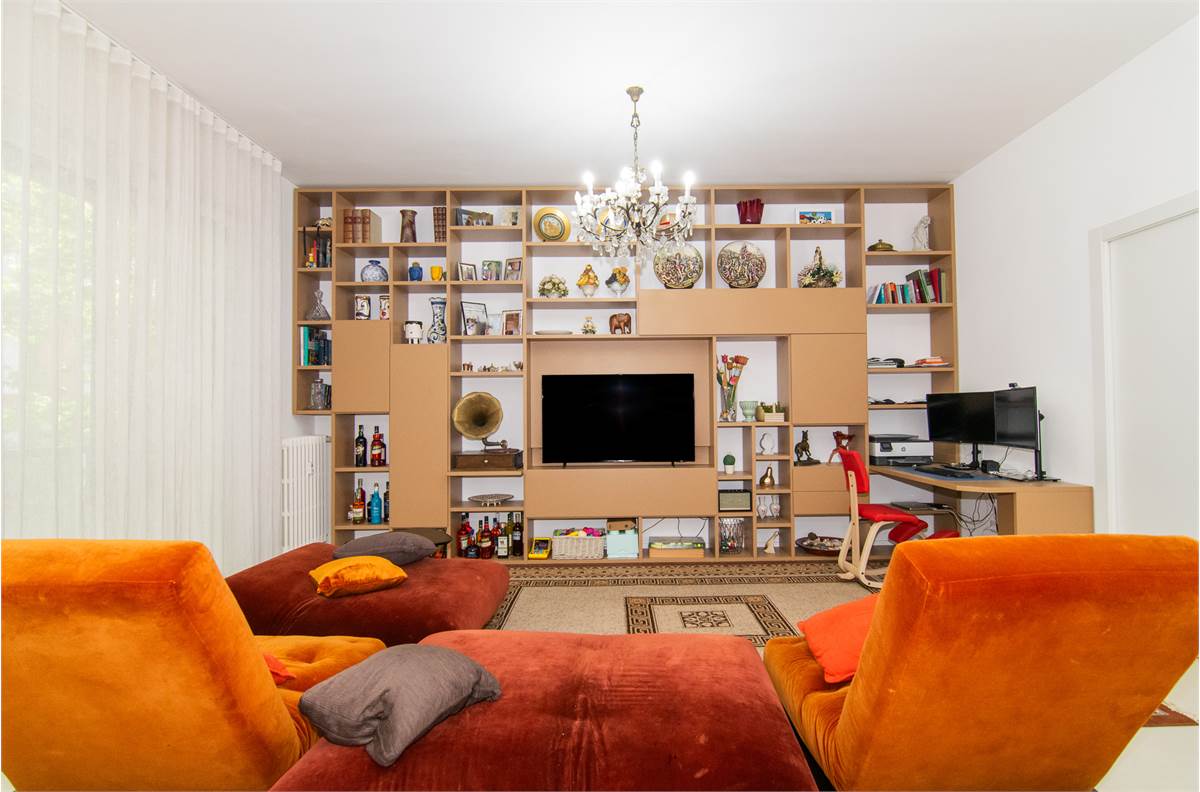L’appartamento si distingue per un elegante salone con cucina a vista, un ambiente luminoso e accogliente con sfogo esterno su due balconi.