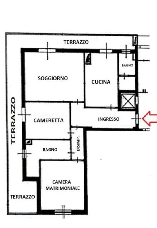L'immobile è caratterizzato da ampi volumi e spazi vivibili, molto luminoso ed arioso impreziosito da un terrazzo angolare che si estende lungo tutto il perimetro dell'appartamento.