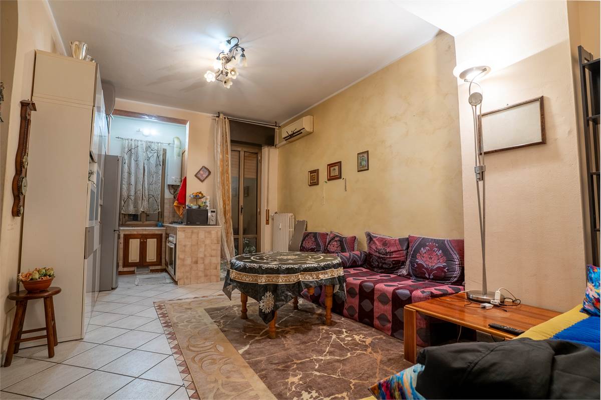 L'unità immobiliare oggetto di compravendita è sita al piano rialzato all’interno di un condominio e la sua disposizione è la seguente: ingresso, soggiorno con cucina a vista e balcone, camera matrimoniale e infine bagno.