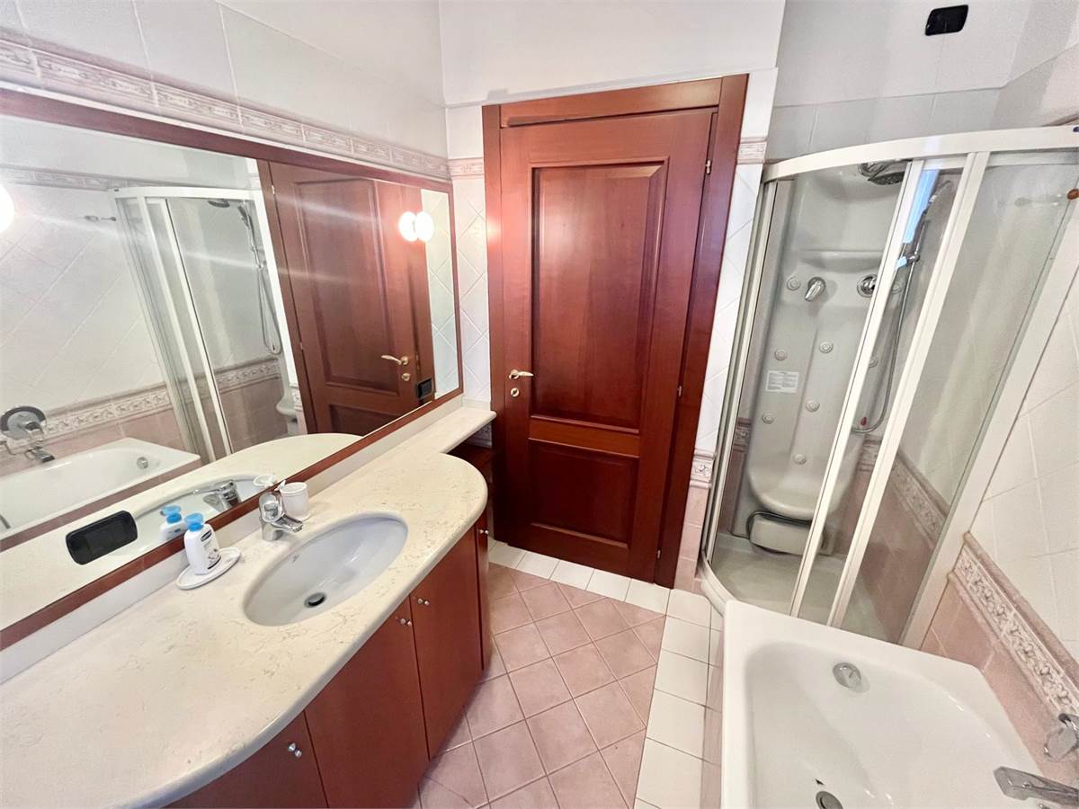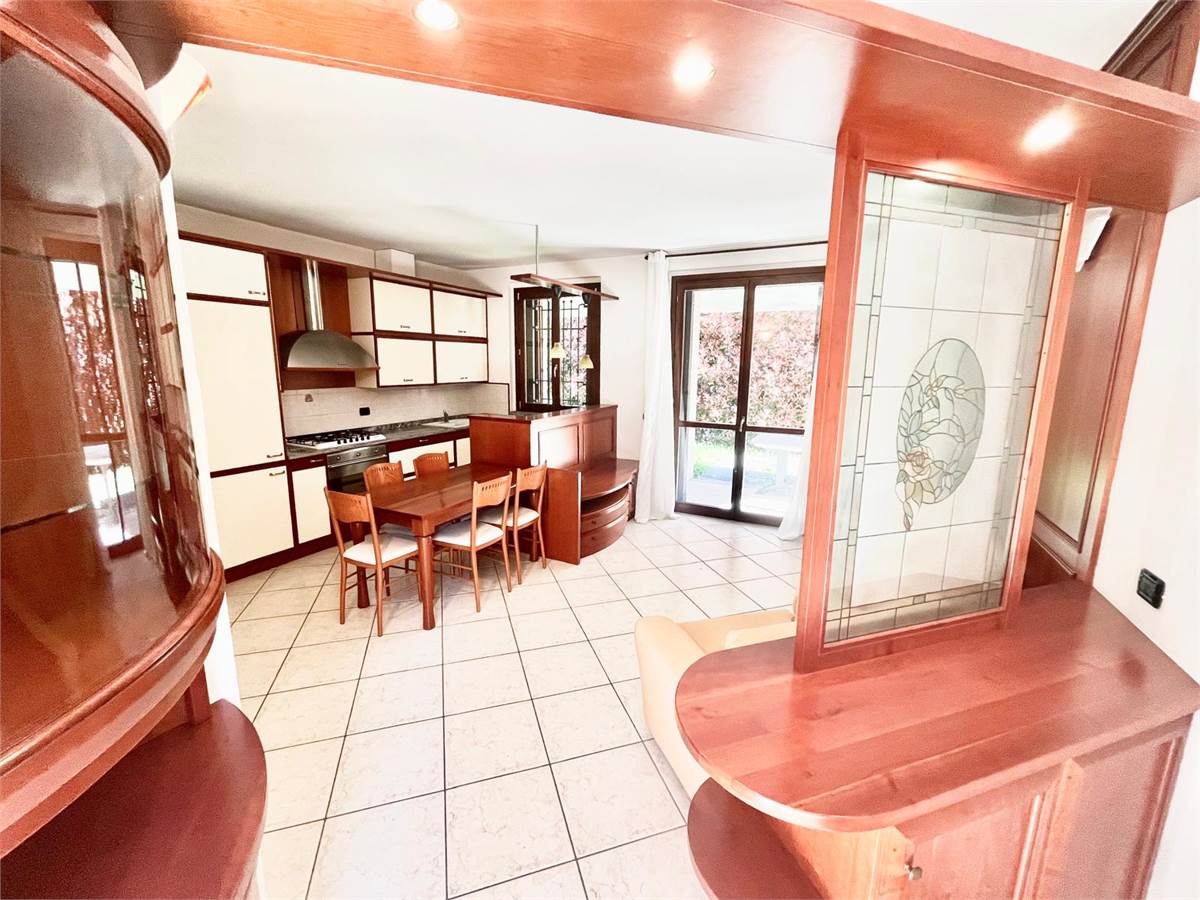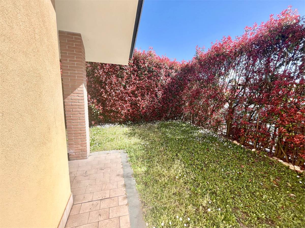 Completano la soluzione il fantastico giardino privato di 100 mq, un terrazzo d’ingresso di 12 mq, la cantina e un box doppio in larghezza con accesso diretto dalla taverna.