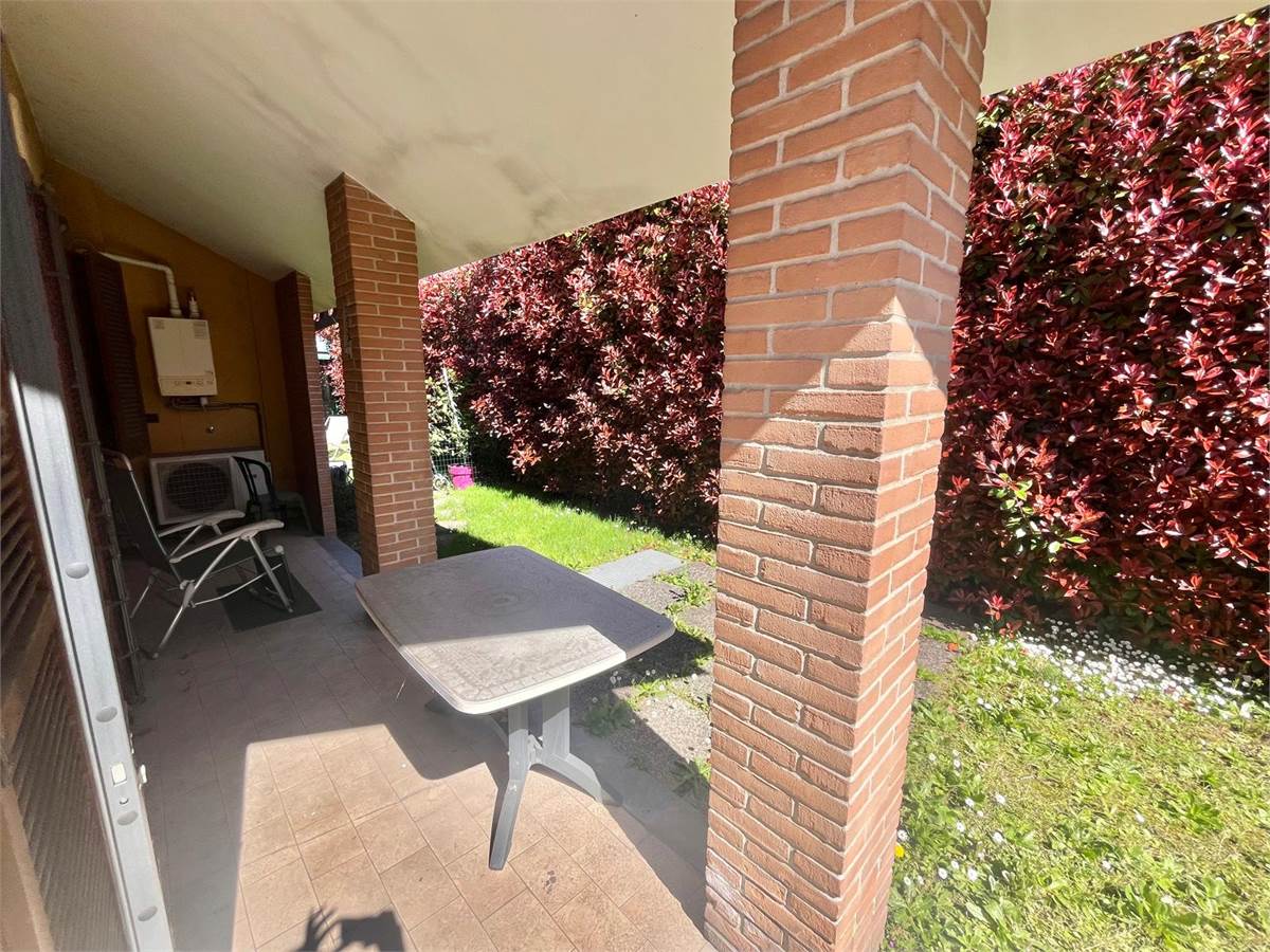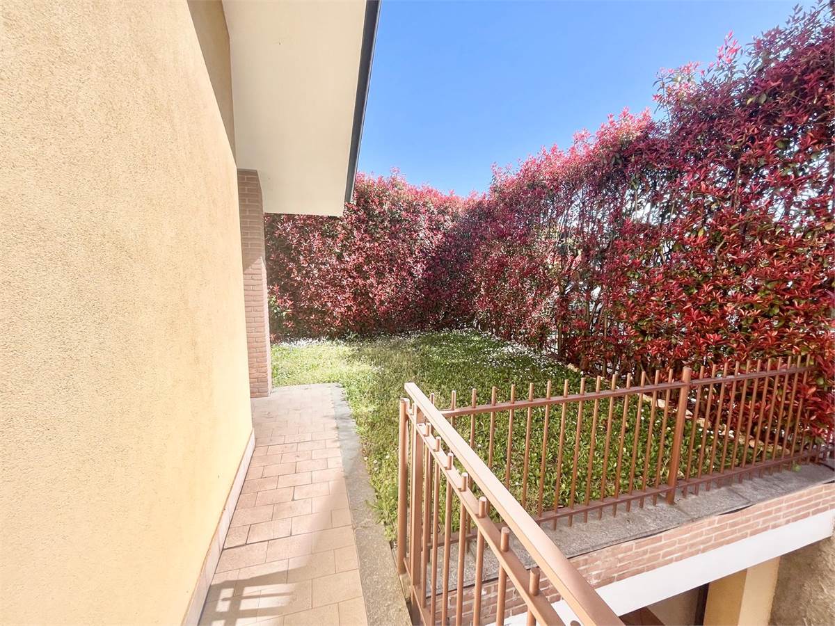 L'unità immobiliare oggetto di compravendita si dispone su due piani all’interno di una villa bifamiliare edificata nel 2000 con facciata in mattone a vista.