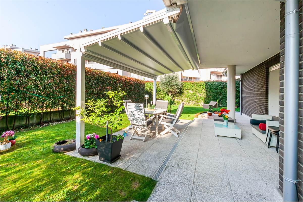 Completano la soluzione uno stupendo giardino di 220 mq con ampio portico provvisto di tenda da sole retraibile automaticamente e una cantina oltre alla possibilità di un box singolo al prezzo di 20.000,00 €