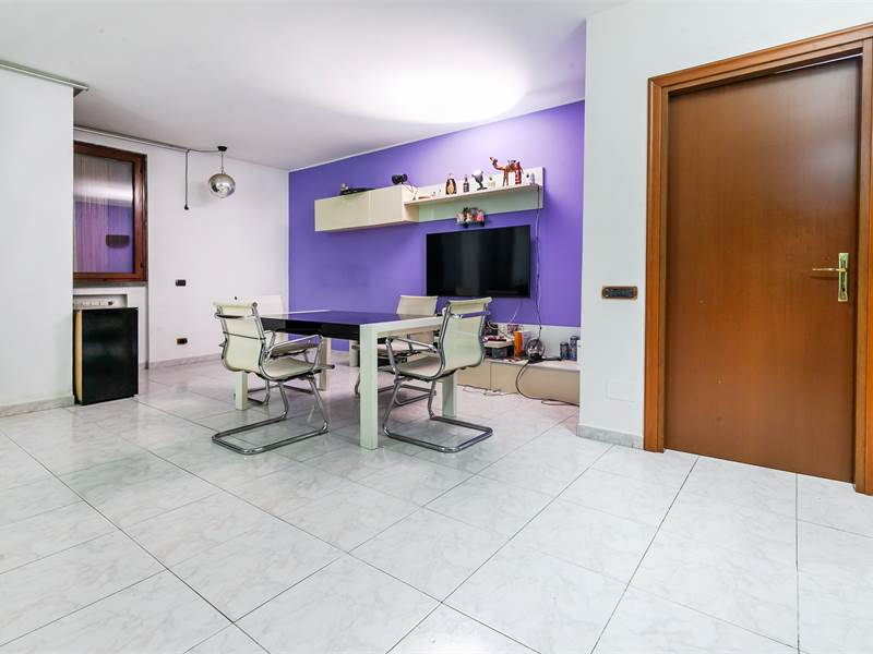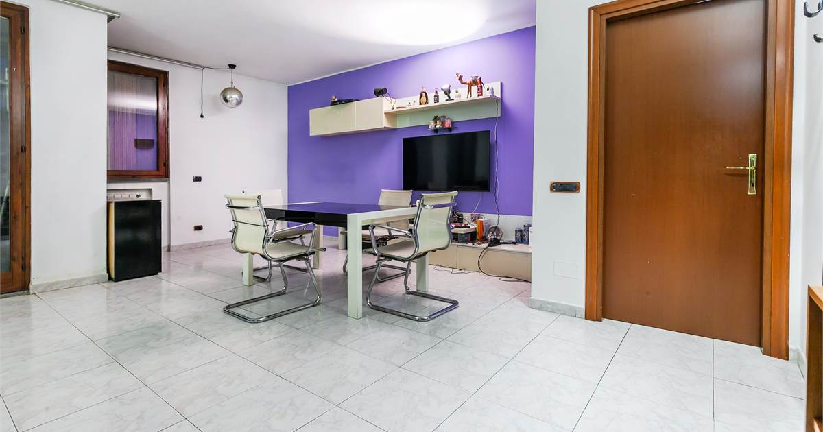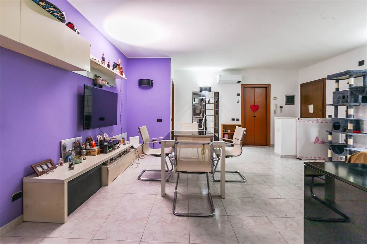 L'unità immobiliare oggetto di compravendita è sita al terzo piano con ascensore all'interno di un condominio in buone condizioni generali e la disposizione interna è la seguente: ingresso, ampio soggiorno con balcone, cucina abitabile con secondo balcone, camera matrimoniale, cameretta, doppi sevizi di cui uno cieco infine il ripostiglio.