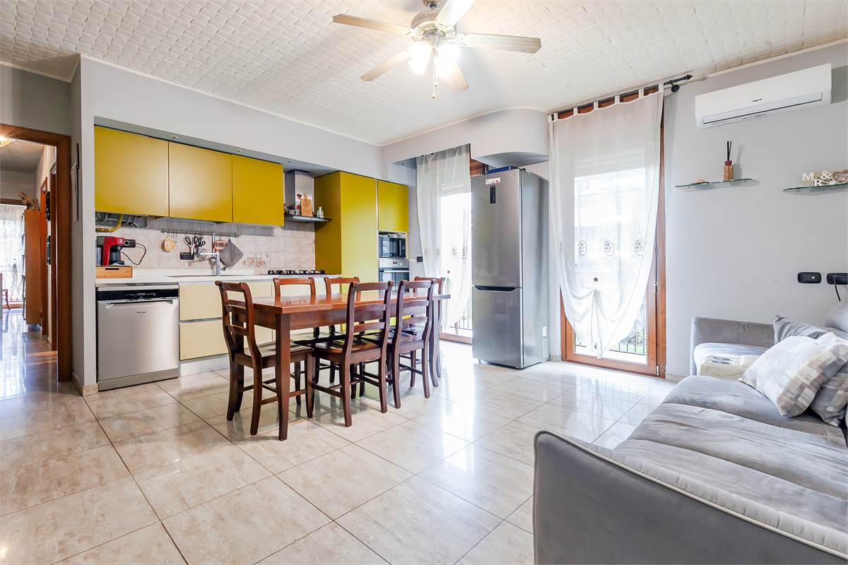 L'unità immobiliare oggetto di compravendita sita al piano terra con ascensore all'interno di un condominio in ottime condizioni generali e la disposizione interna è la seguente: ingresso, soggiorno con cucina a vista e balcone, camera matrimoniale, cameretta e infine bagno finestrato.