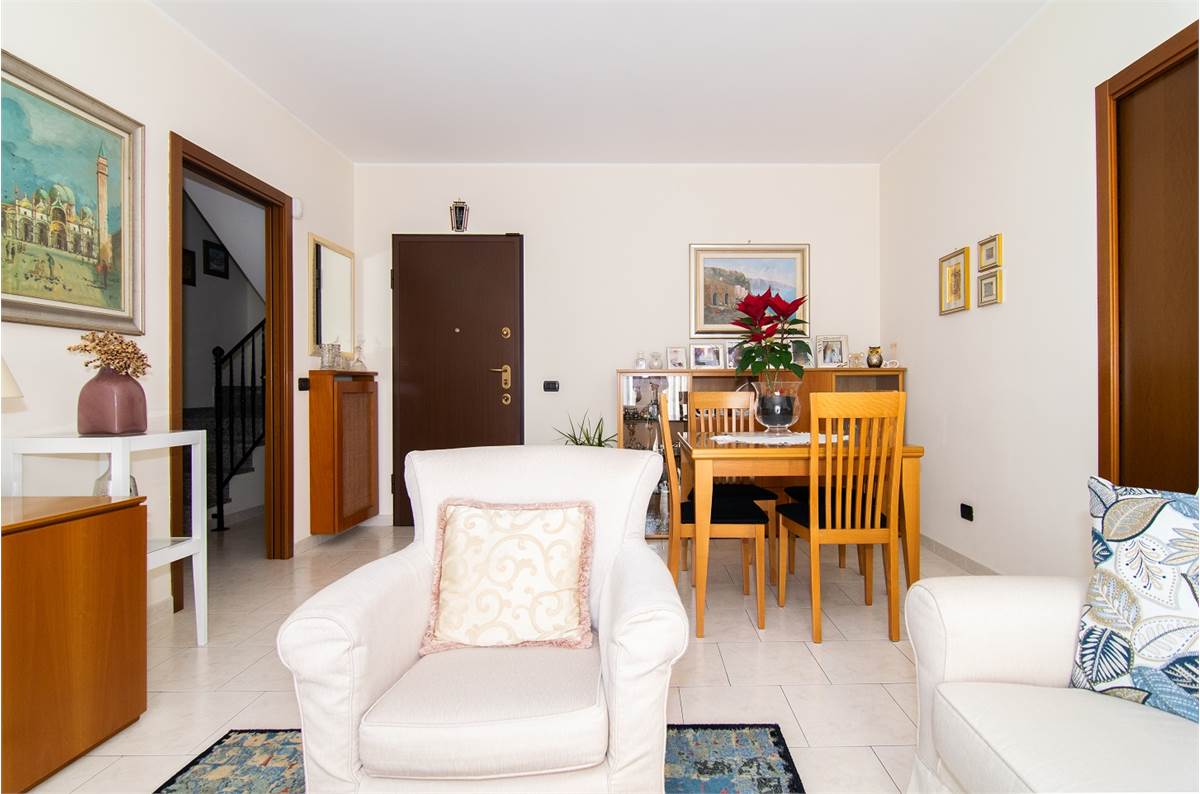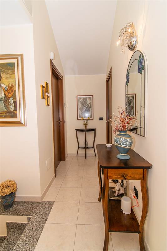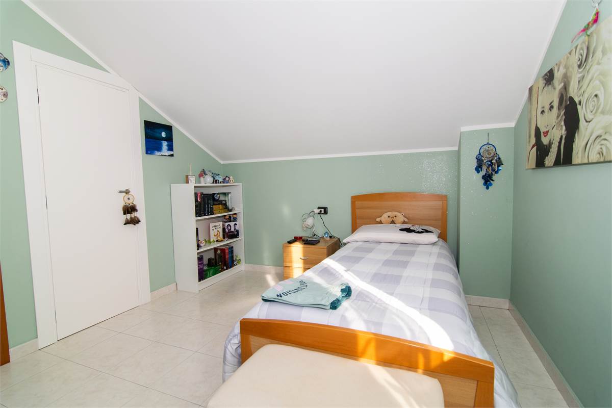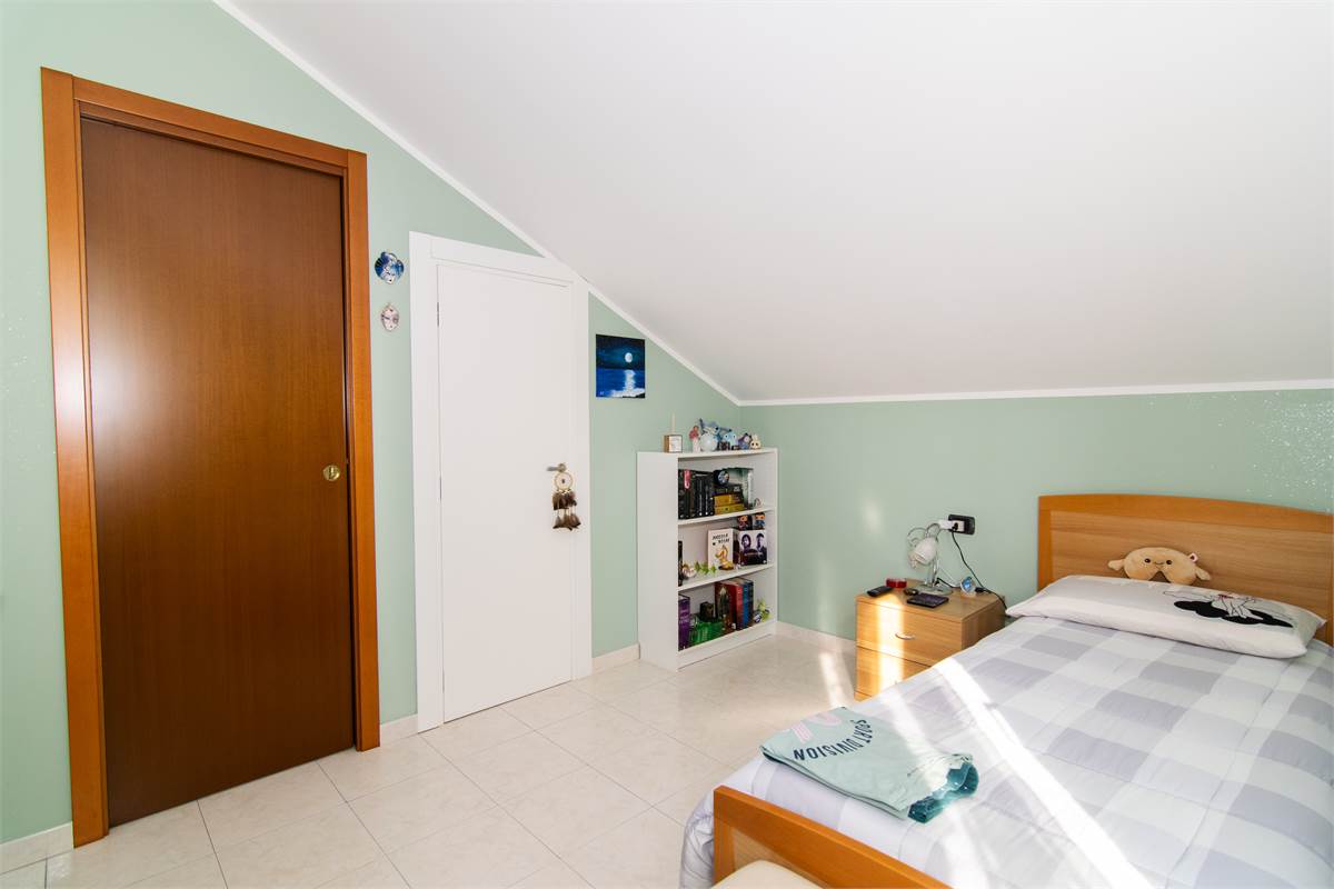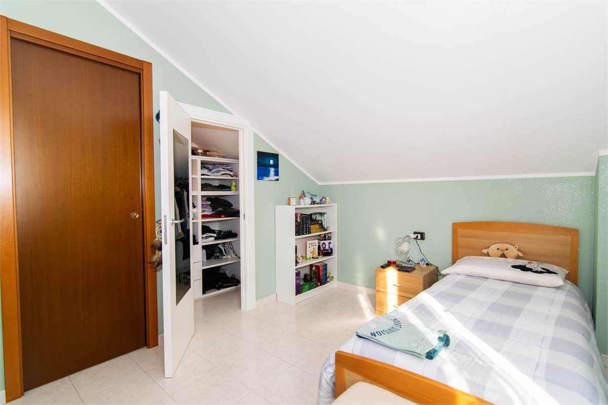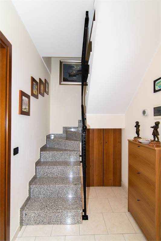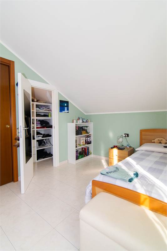 L’immobile è composta da un lumisoso soggiorno e una cucina abitabile enttrambi con accesso diretto allo spazio esterno dove poter trascorrere momenti di relax e godersi la tranquillità della propria casa, una camera matrimoniale, una camera singola con balcone ed un bagno. Tramite una scala in marmo si accede al piano mansardato con ulteriori due camere finestrate, una camera ed un bagno entrambi con velux.