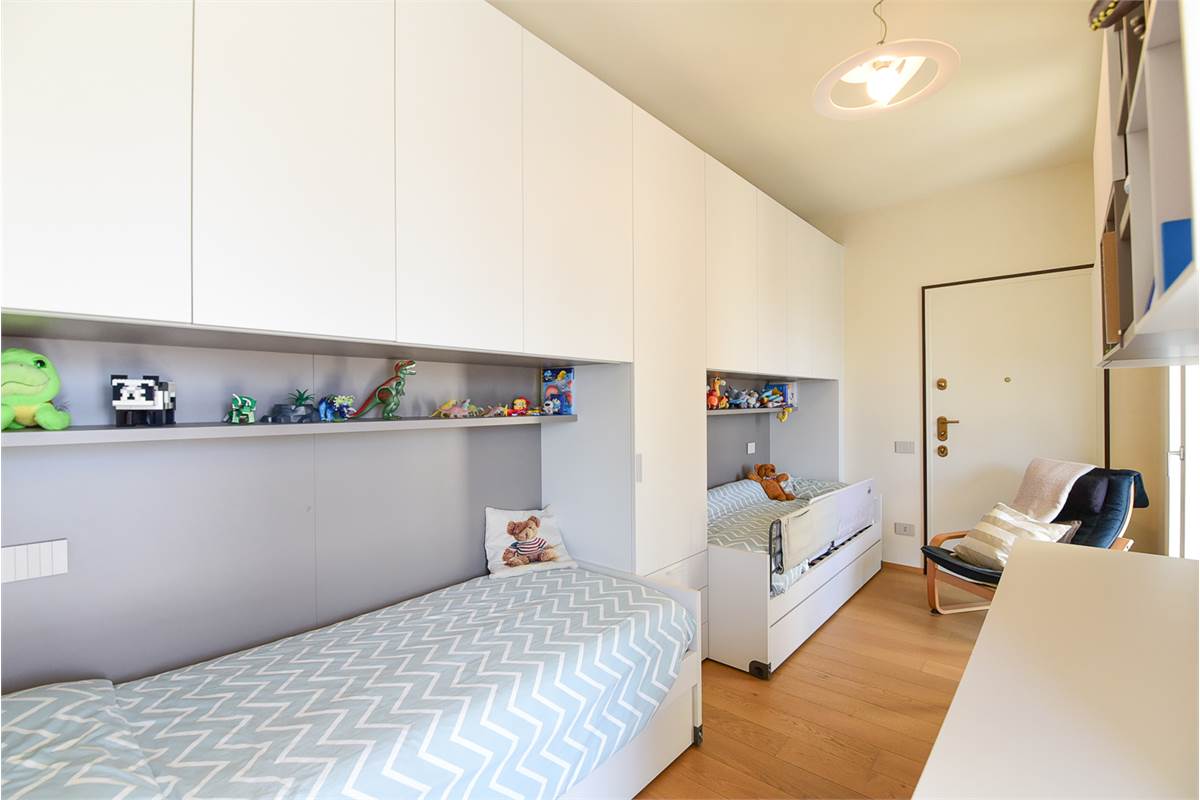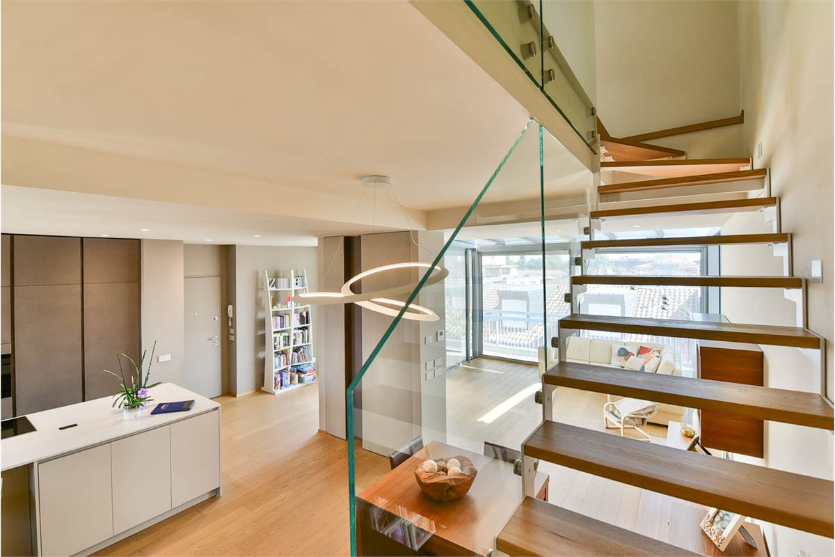 Il piano superiore, collegato al piano inferiore da una scala di design, è dedicato alla zona notte. Due ampie camere da letto, una matrimoniale e una singola, sono state progettate per garantire il massimo comfort e relax. Entrambe le camere da letto si affacciano una su un altro terrazzo e l altra su un balcone offrendo una vista panoramica sulla città e creando un'atmosfera di pace e tranquillità.
